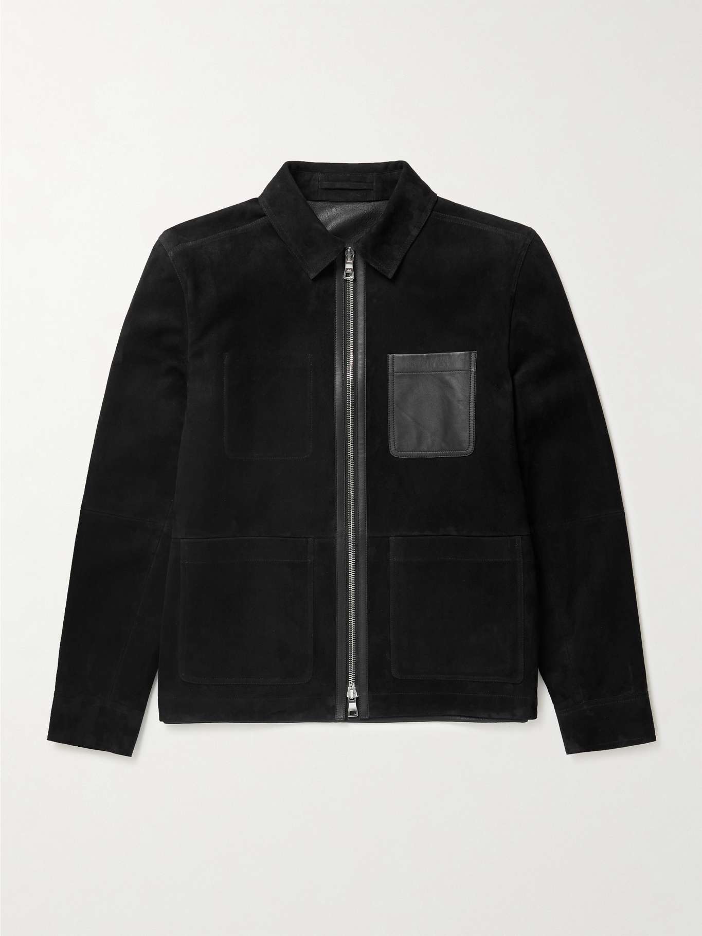 DESIGNED BY MR PORTER. Mr P. eschews seasonal trends, instead putting focus on expert craftsmanship and impeccable fabrics. This chore jacket is cut for a boxy fit from plush suede and traced with supple leather trims. It'll quickly elevate the mood of simple outfits.