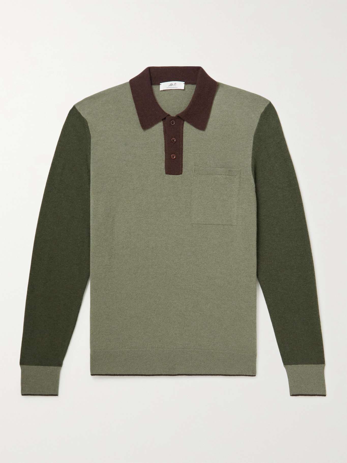 DESIGNED BY MR PORTER. Mr P.'s polo shirt is knitted from merino wool in a colour-block design. It has long sleeves and a fine-gauge handle making it an ideal mid-layer. Style yours with jeans or tailored trousers.