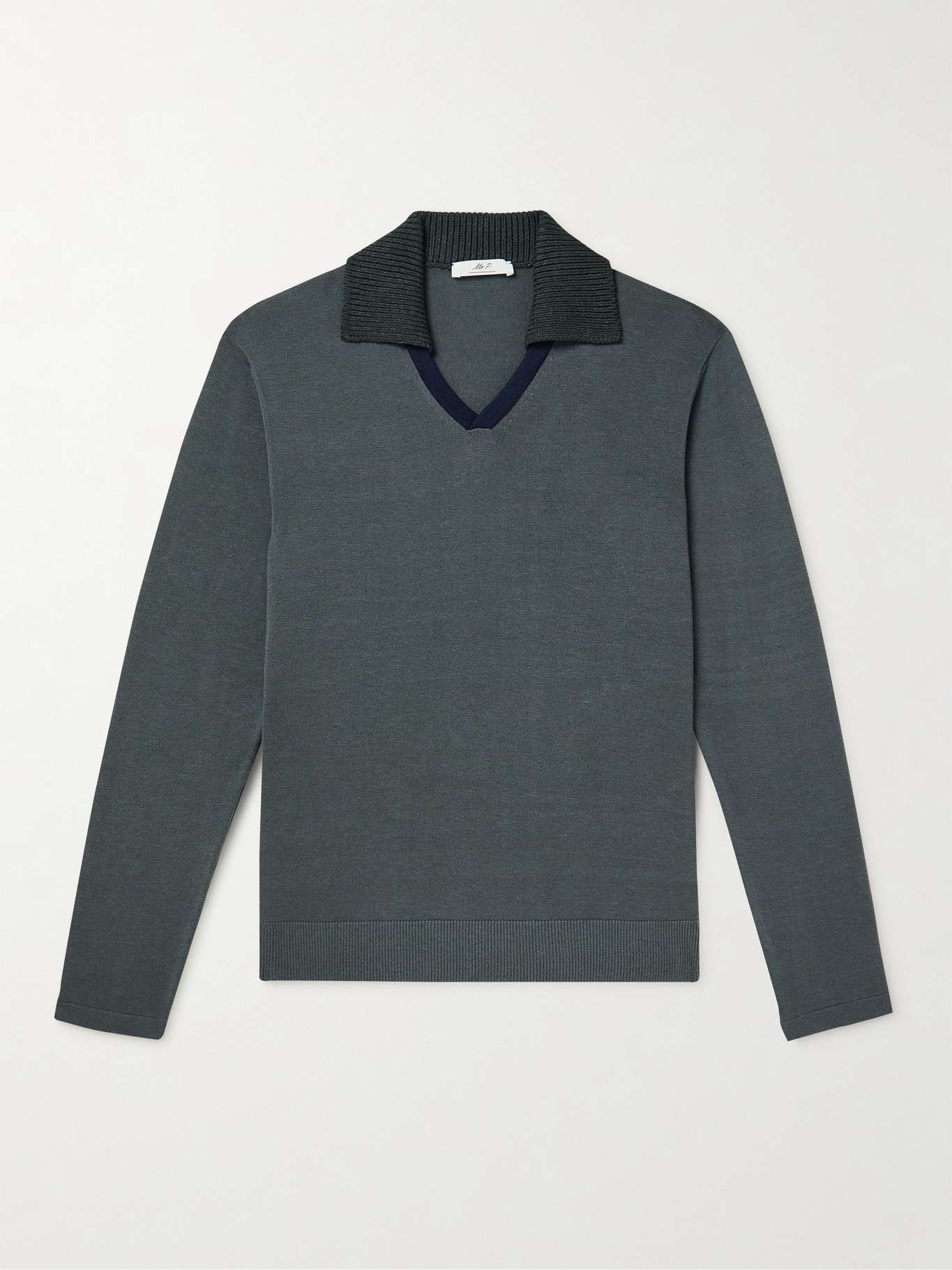 DESIGNED BY MR PORTER. Mr P.'s long-sleeve polo shirt is a contemporary closet staple. It's been made in Switzerland from a comfortable blend of certified organic cotton and TENCEL™ Lyocell with a fine texture that feels soft and smooth. The contrasting trim and ribbed collar is constructed from surplus yarn.