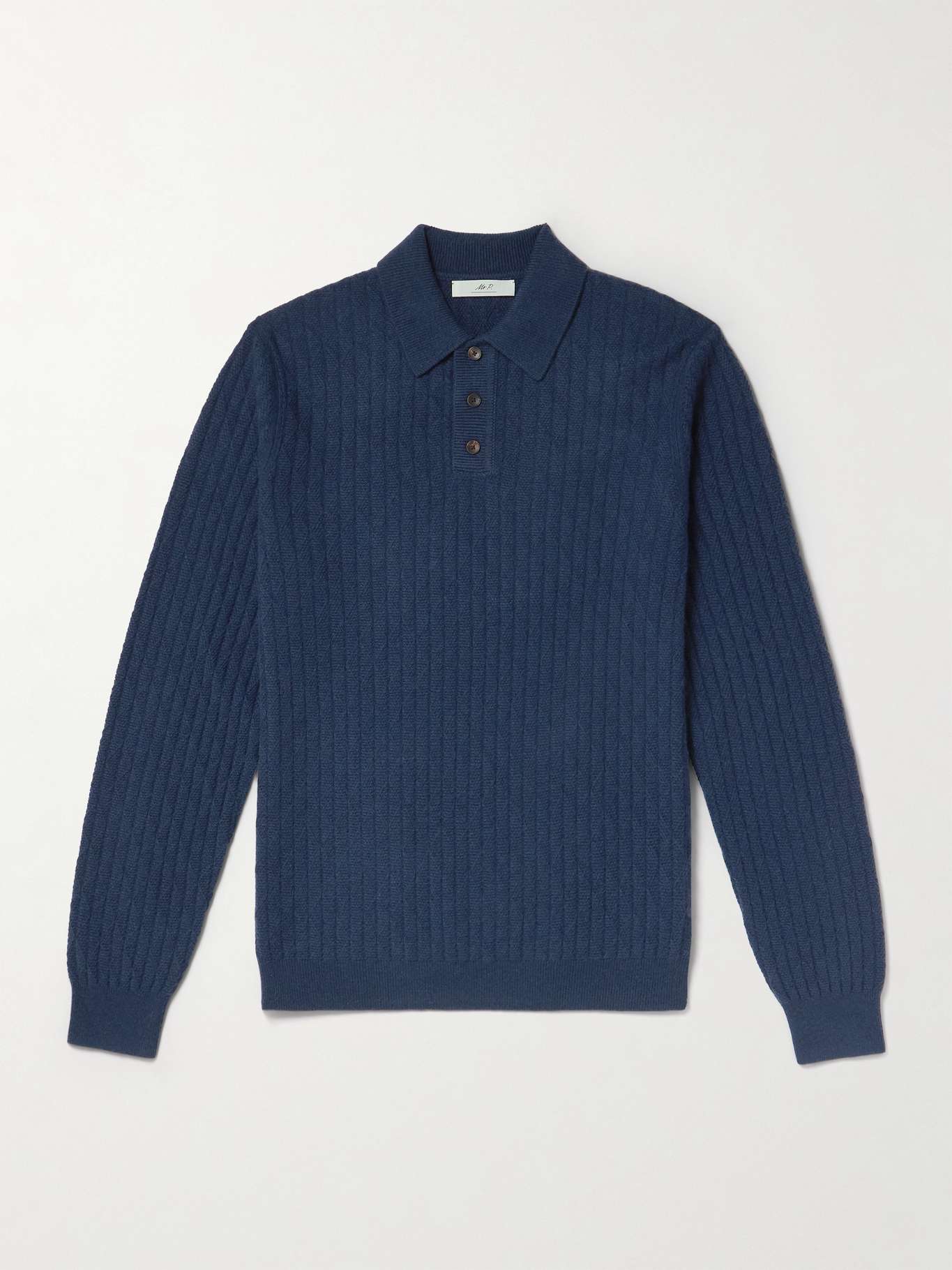 DESIGNED BY MR PORTER. Mr P.'s ribbed polo shirt is knitted in a subtle diamond motif for added visual depth and tactile richness. It's made from a wool and camel-blend in a versatile storm-blue shade called 'Outer Space'.