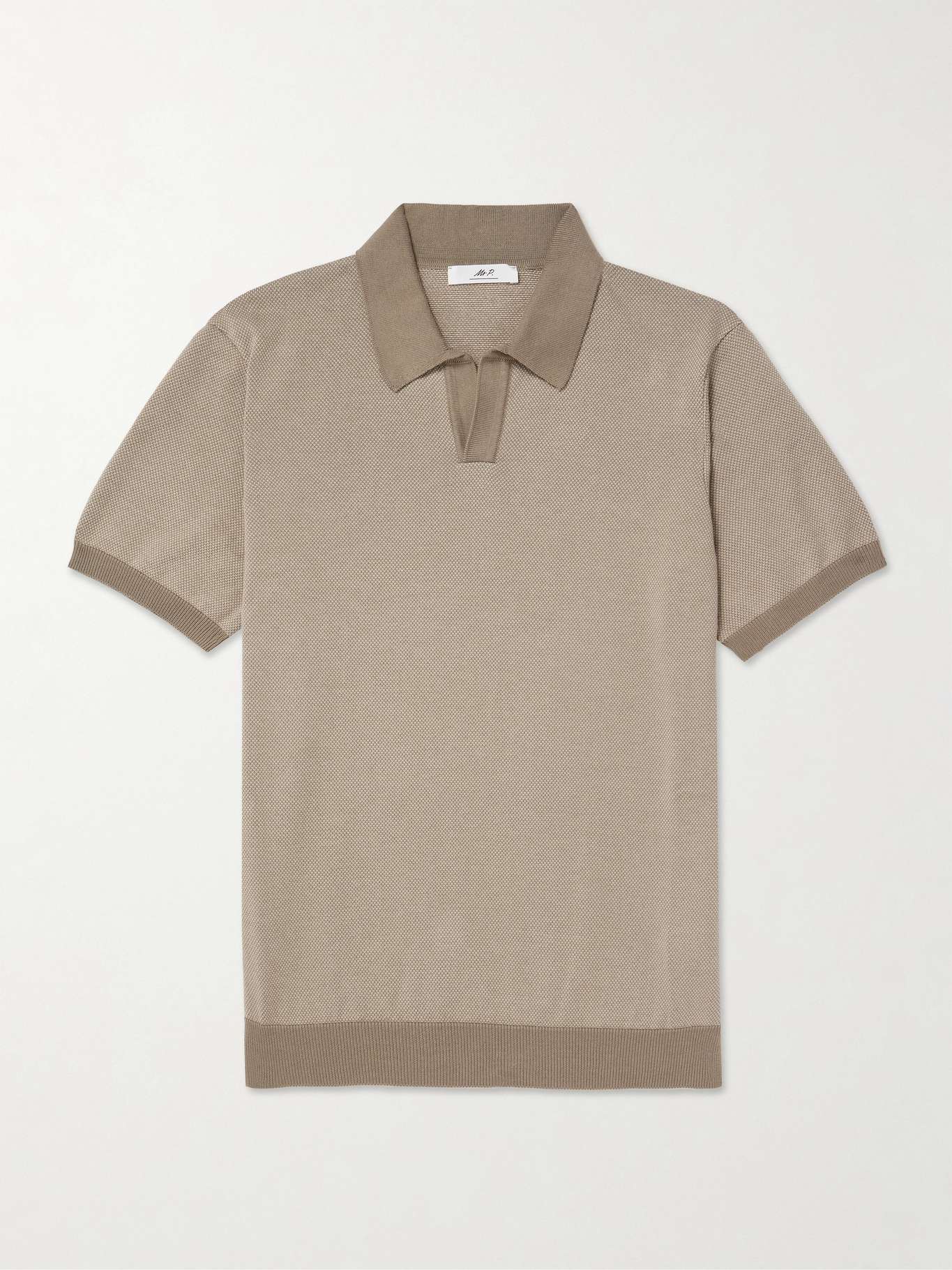 DESIGNED BY MR PORTER. Mr P.'s polo shirt is honeycomb-knitted with contrasting threads, accentuating the pattern's intricacy. Made from breathable cotton, it has a relaxed open collar and ribbed trims.