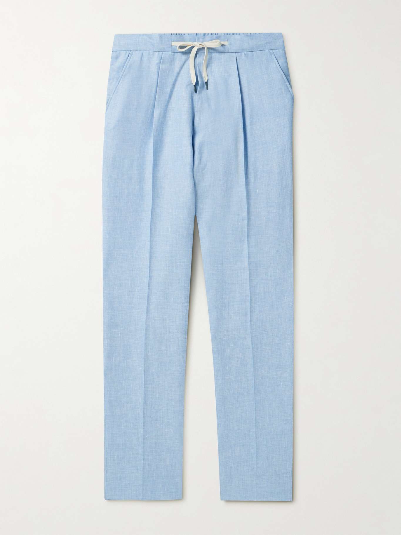 MR P. Tapered Pleated Virgin Wool, Linen and Silk-Blend Drawstring Trousers