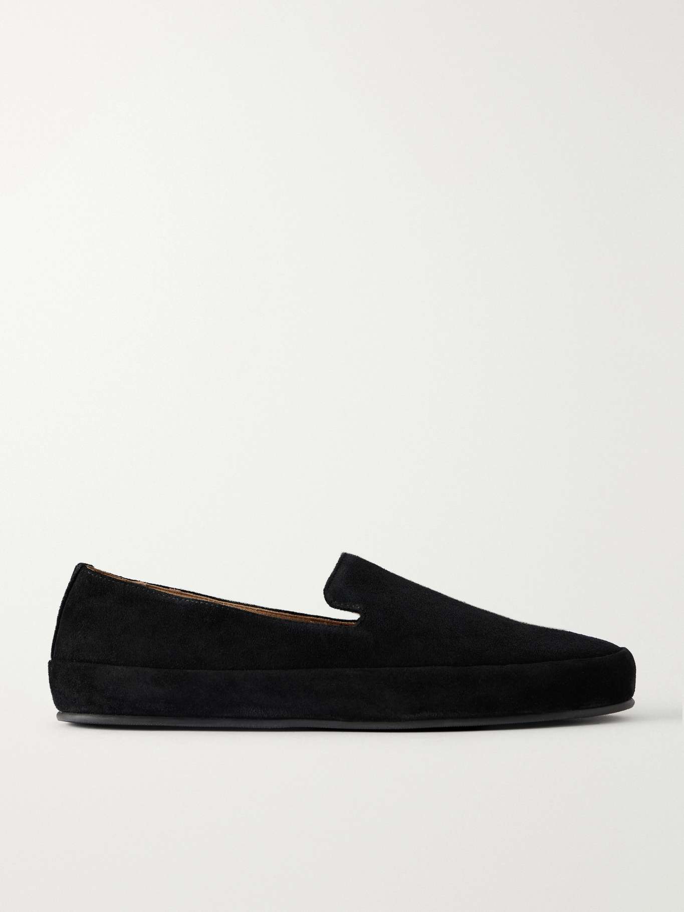 Mulo refines classic evening footwear with a focus on material and proportion. These loafers are made from suede with a streamlined profile, set on slim soles that keep the overall look sharp and understated.