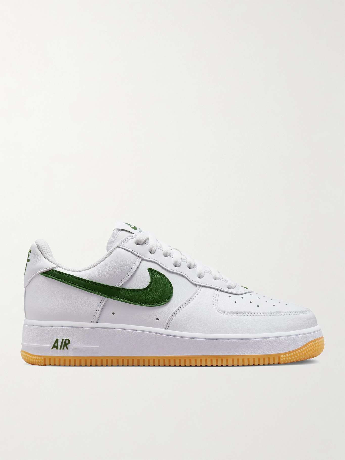 Introduced in 1982, Nike's 'Air Force 1' redefined sneaker style. From the 'Colour of the Month' series, this pair has smooth white leather uppers, 'Forest Green' 'Swoosh' branding and a perforated toe box for breathability. They're set on signature 'Air' midsoles.