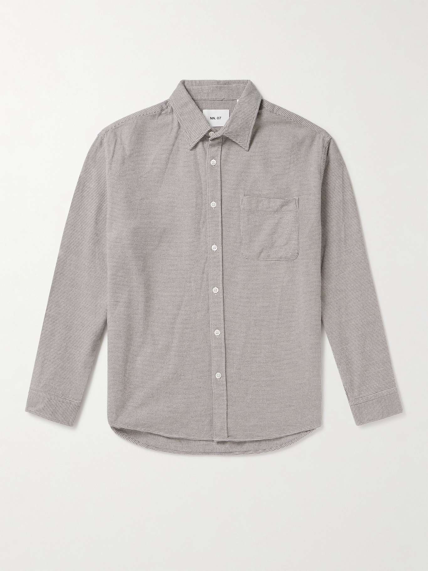NN07's 'Deon 5270' shirt is a versatile staple you'll turn to time and again. Made from houndstooth cotton-flannel, it's cut for a slightly loose fit with dropped shoulders. It's detailed with mother-of-pearl buttons and a single patch pocket.