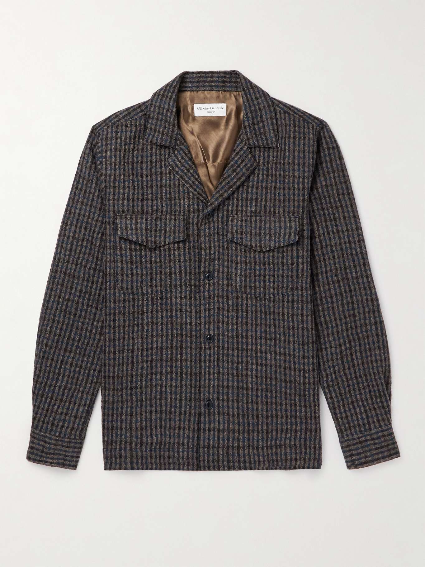 OFFICINE GÉNÉRALE Judas Camp-Collar Checked Wool-Gauze Jacket