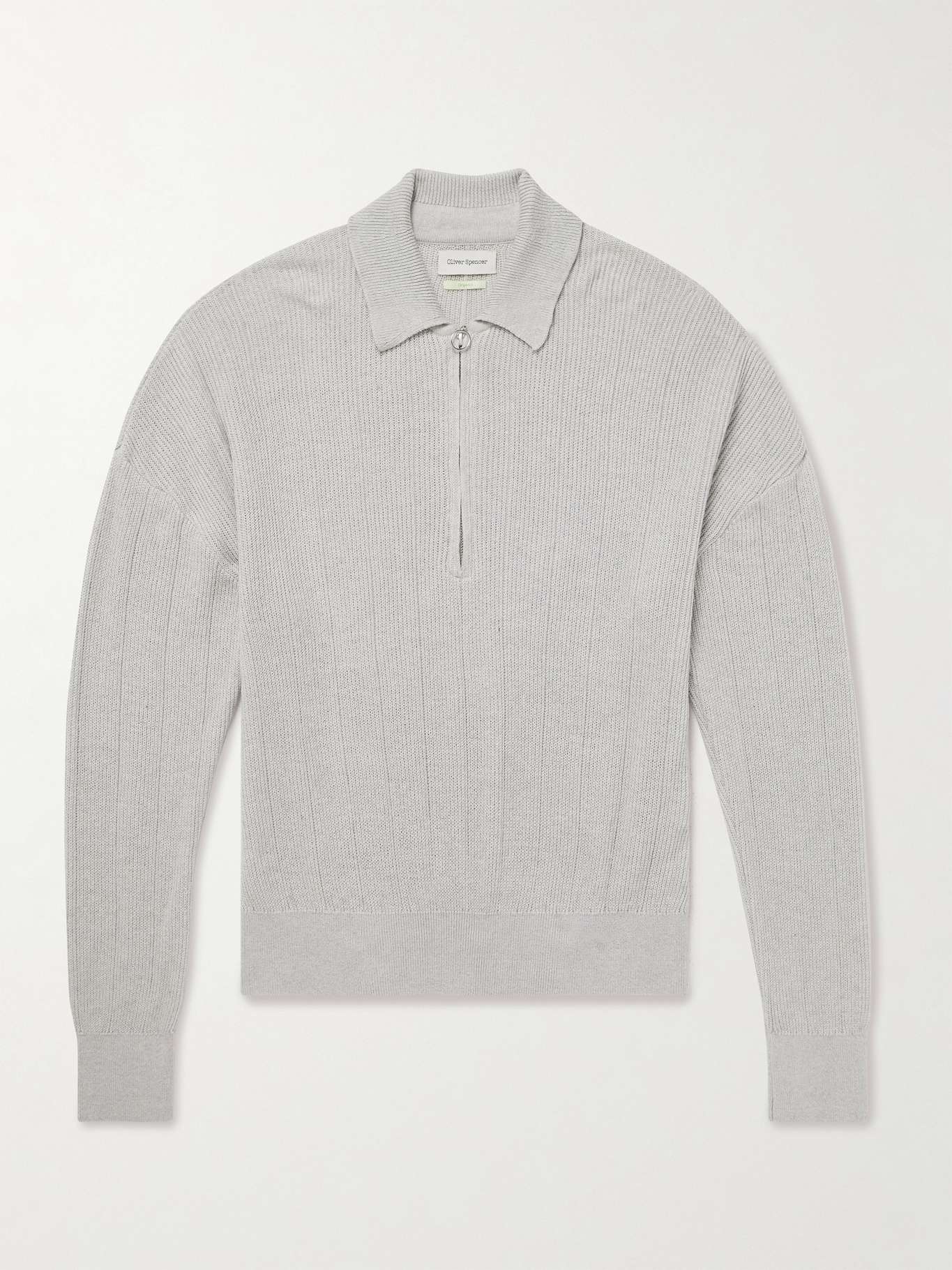 OLIVER SPENCER Brice Ribbed Organic Cotton and Merino Wool-Blend Half-Zip Sweater