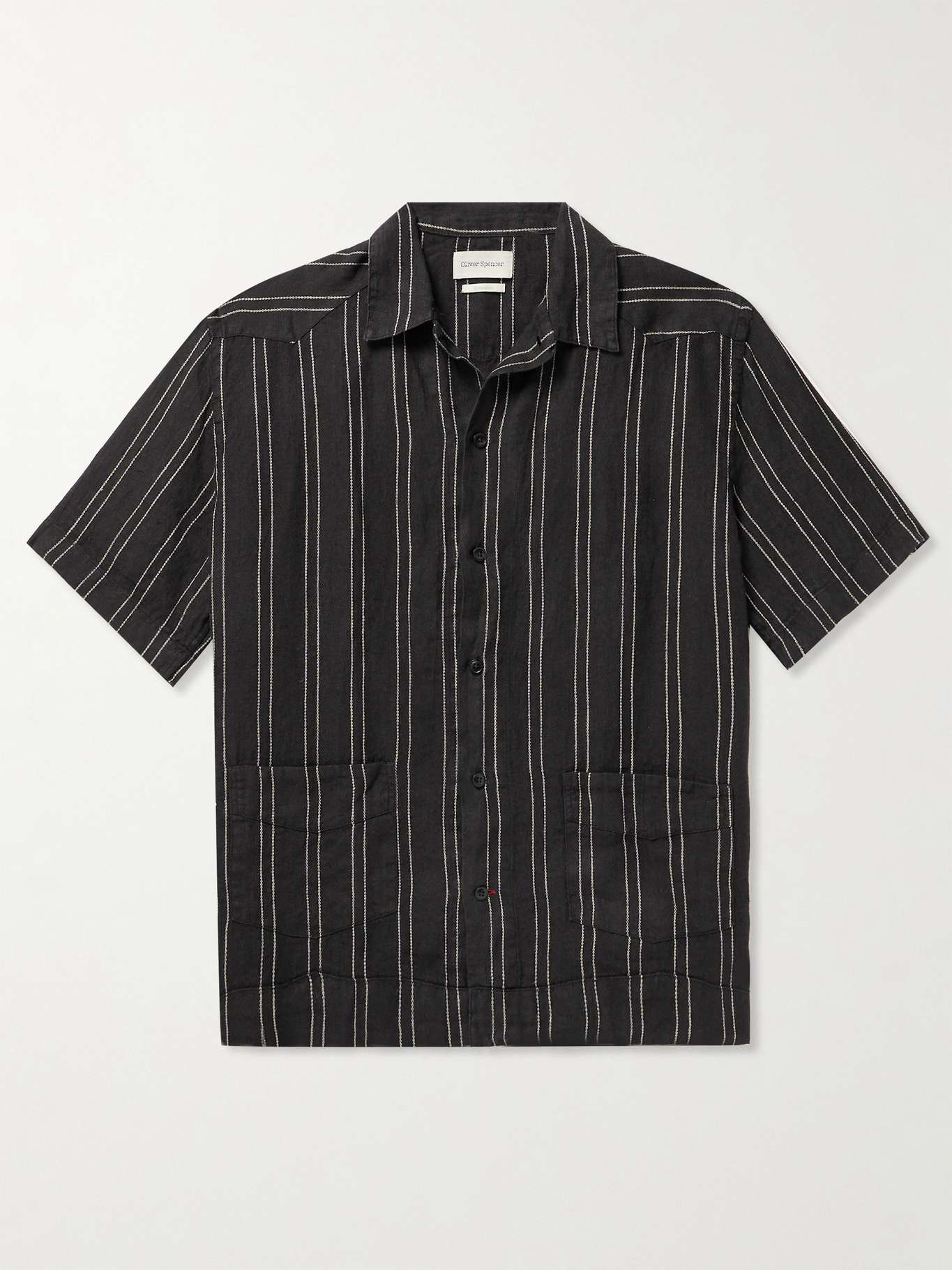 OLIVER SPENCER Camp-Collar Striped Linen Shirt