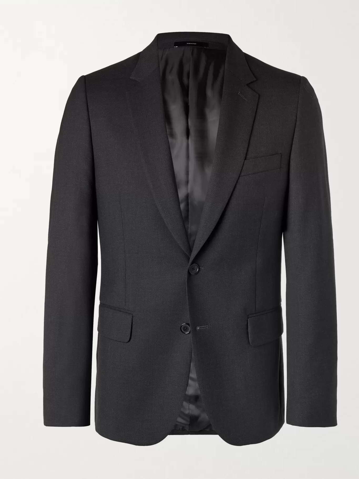 The 'Soho' block is Paul Smith's most favoured since suit jackets like this one fit so neatly. It's been made in Italy from naturally breathable wool and fully lined for a smooth glide over shirts. The dark-grey shade works well with trousers in black equally as much as the matching pair.