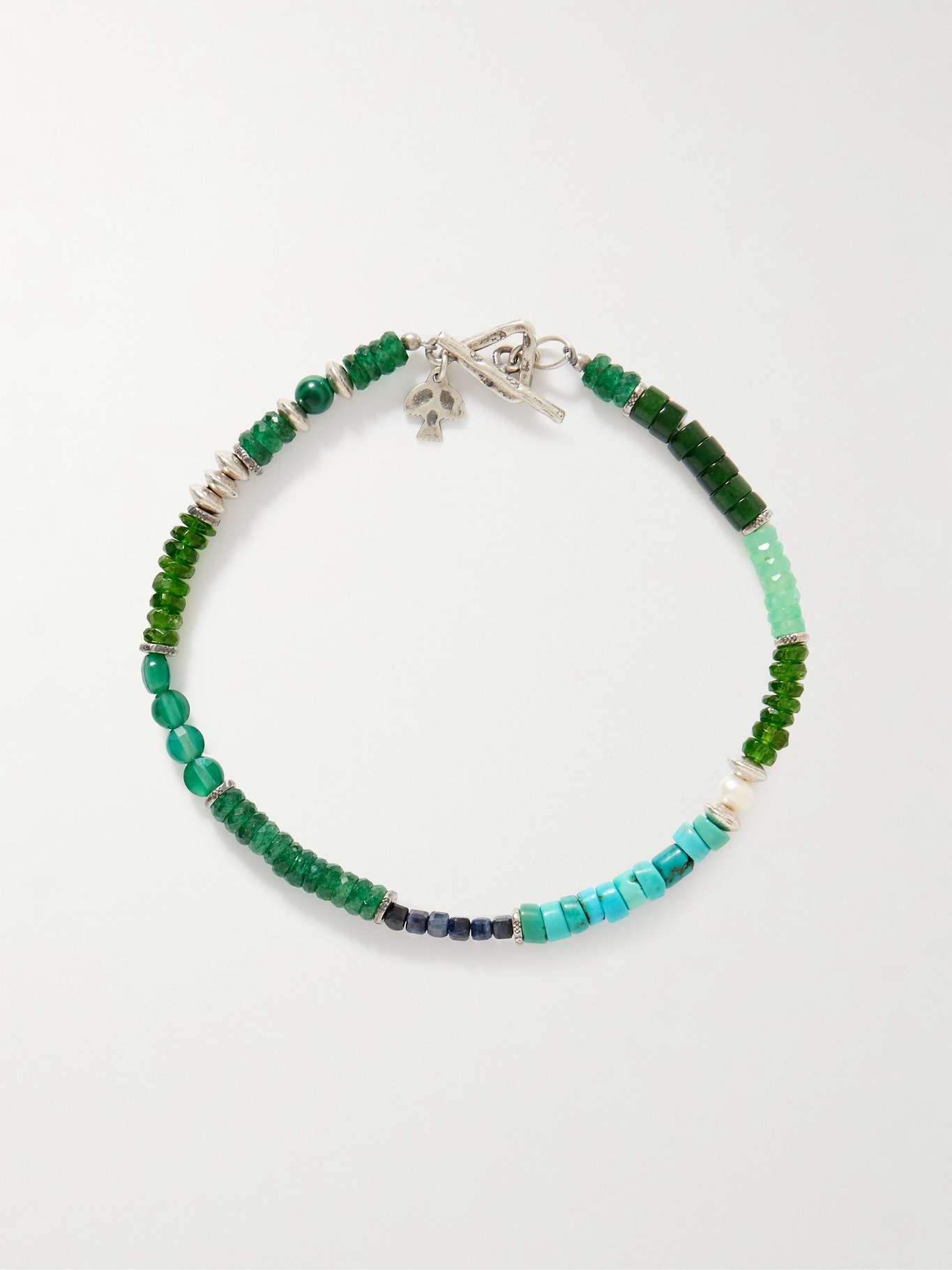 Peyote Bird's 'Forest Grove' bracelet is threaded with jade, turquoise, onyx, chrysoprase, aventurine and pearl beads. It's made from sterling silver and has a signature toggle fastening.