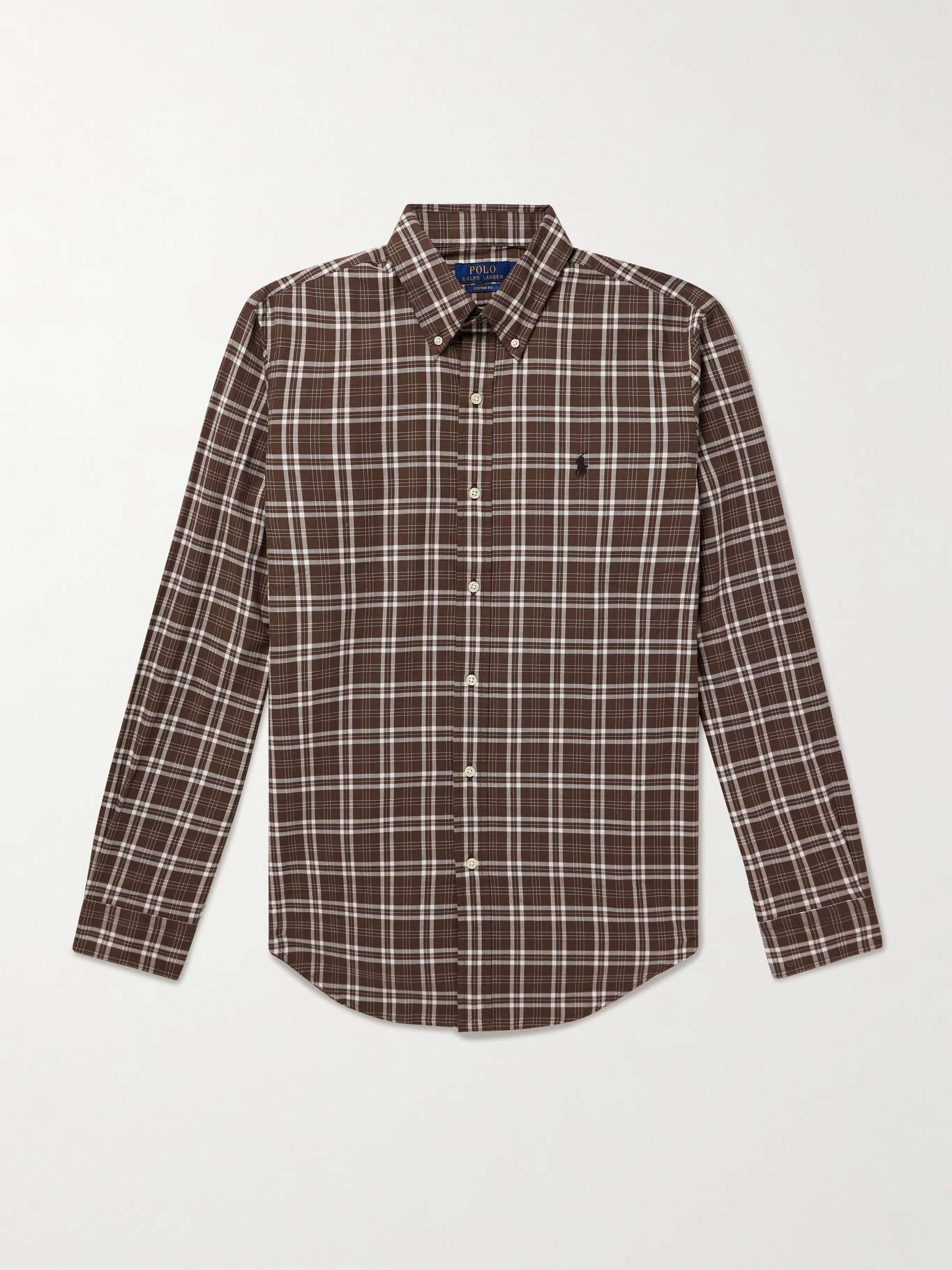 POLO RALPH LAUREN Button-Down Checked Logo-Embroidered Cotton Shirt