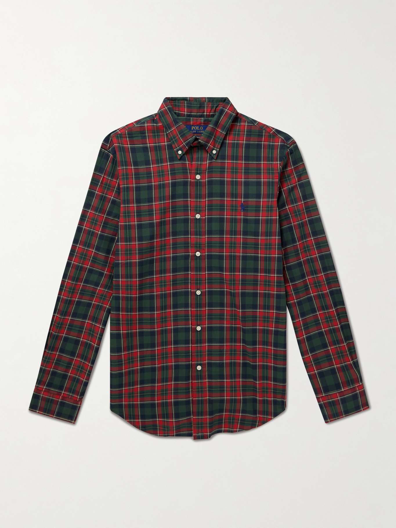 POLO RALPH LAUREN Button-Down Checked Logo-Embroidered Cotton Shirt