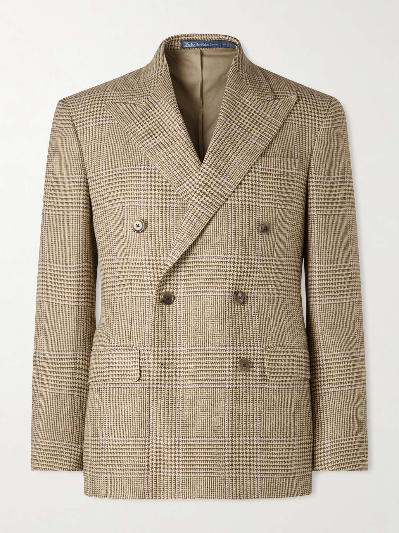 POLO RALPH LAUREN Double-Breasted Prince of Wales Checked Silk, Wool and Linen-Blend Blazer