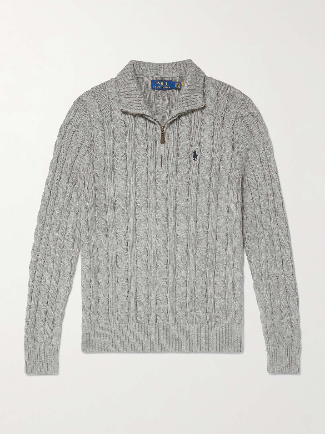 POLO RALPH LAUREN Logo-Embroidered Cable-Knit Cotton Half-Zip Sweater