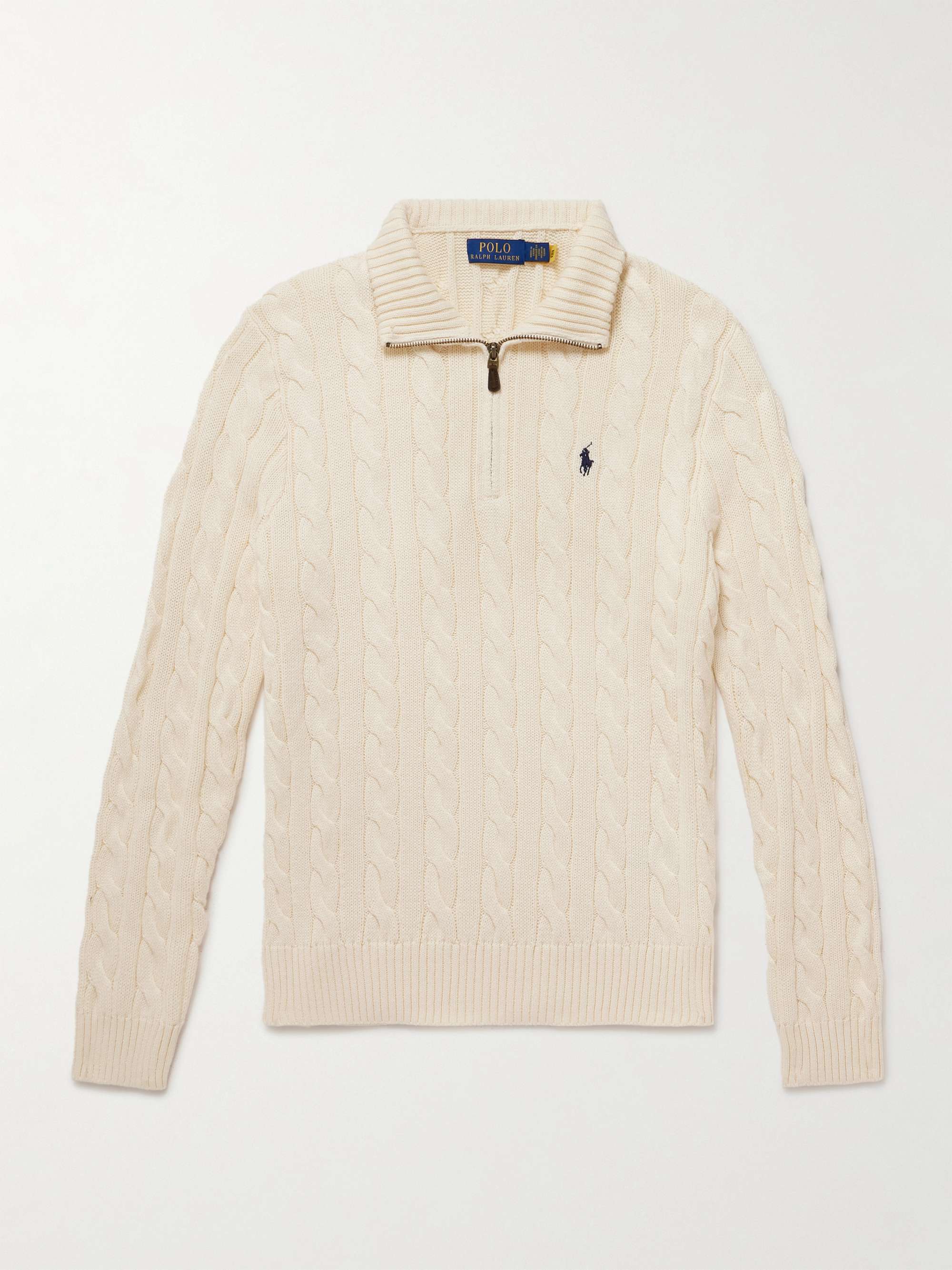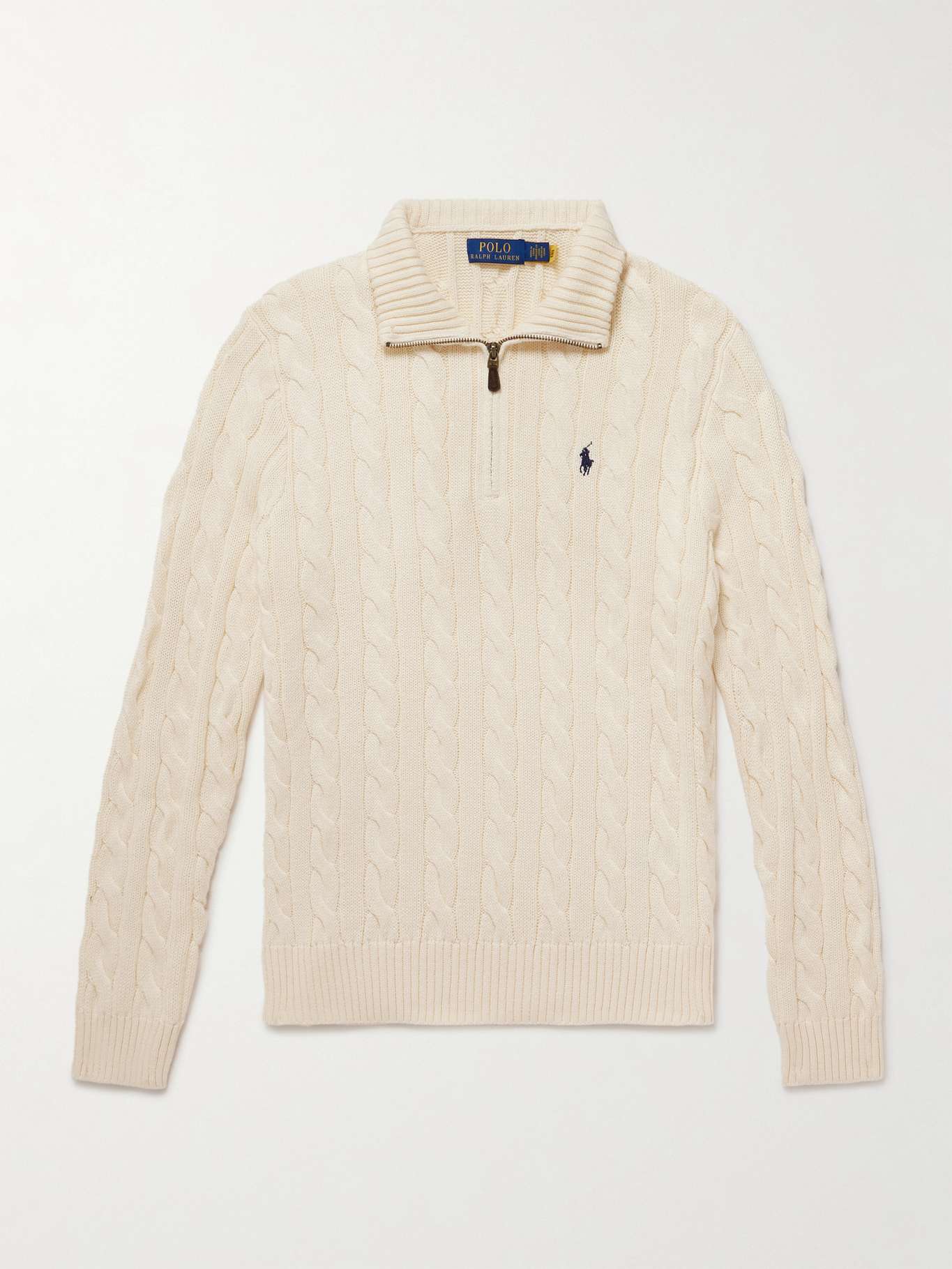 POLO RALPH LAUREN Logo-Embroidered Cable-Knit Cotton Half-Zip Sweater