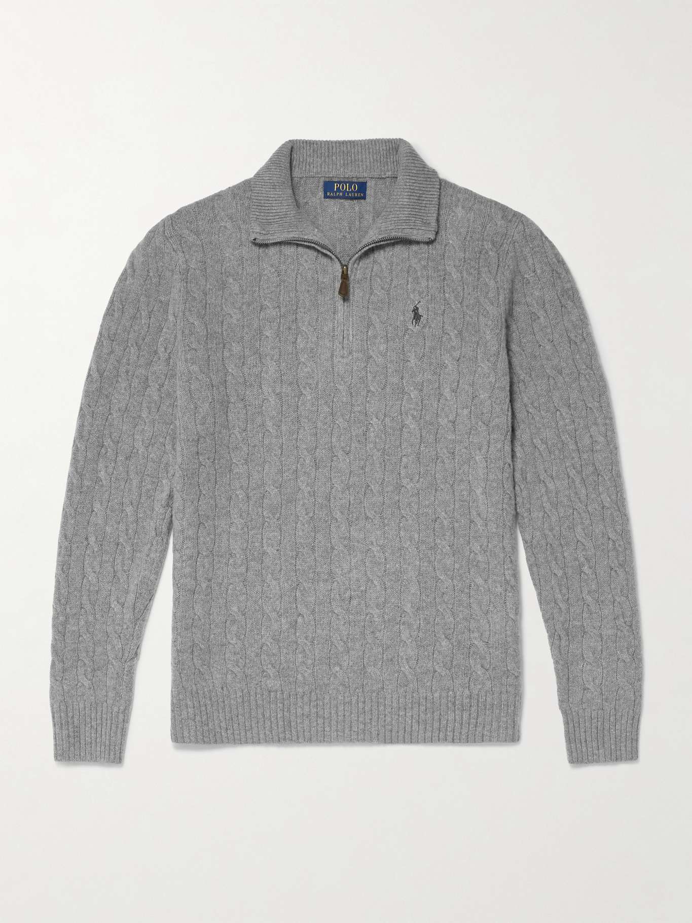 POLO RALPH LAUREN Logo-Embroidered Cable-Knit Wool and Cashmere-Blend Half-Zip Sweater