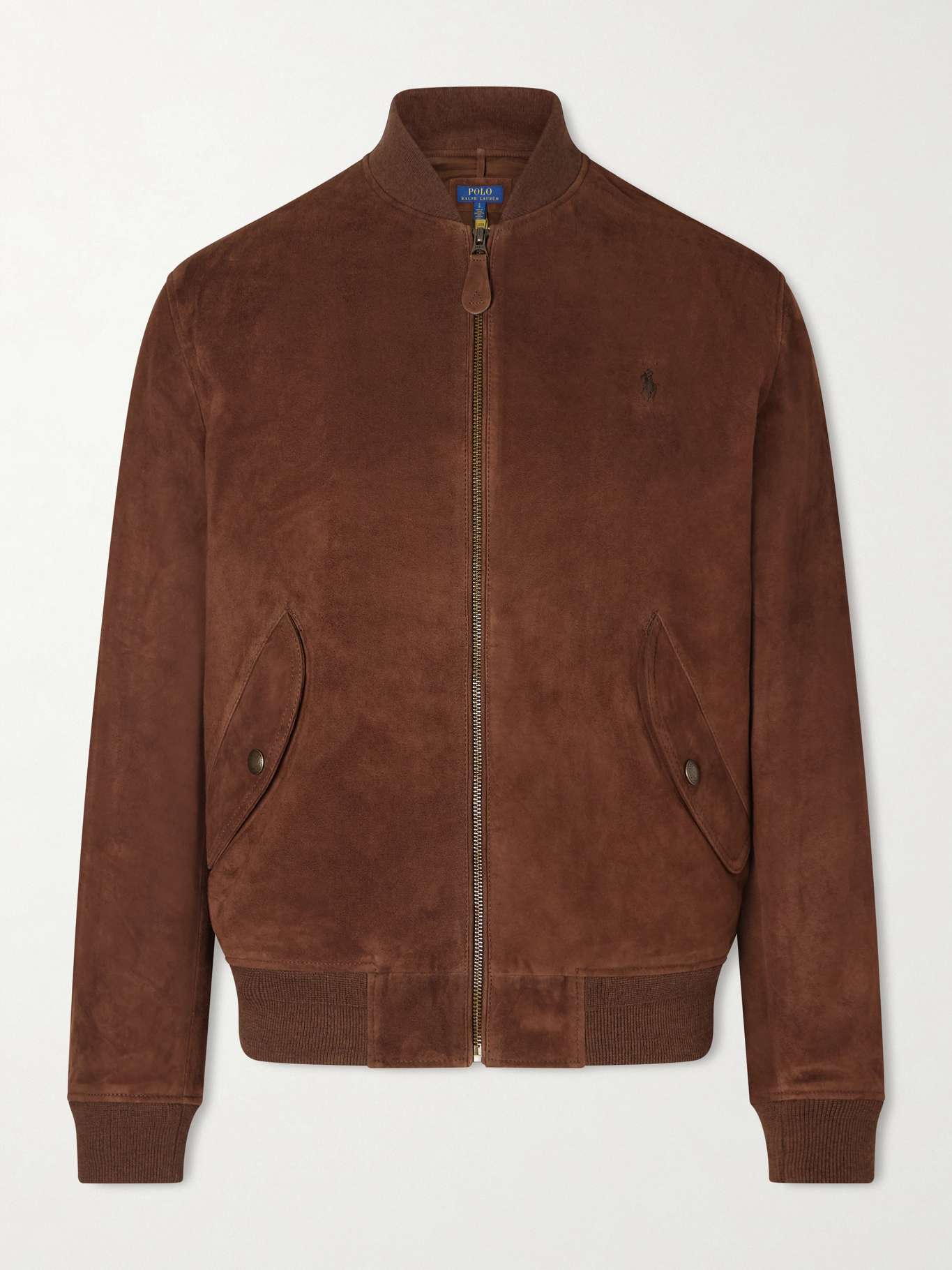 POLO RALPH LAUREN Logo-Embroidered Suede Bomber Jacket