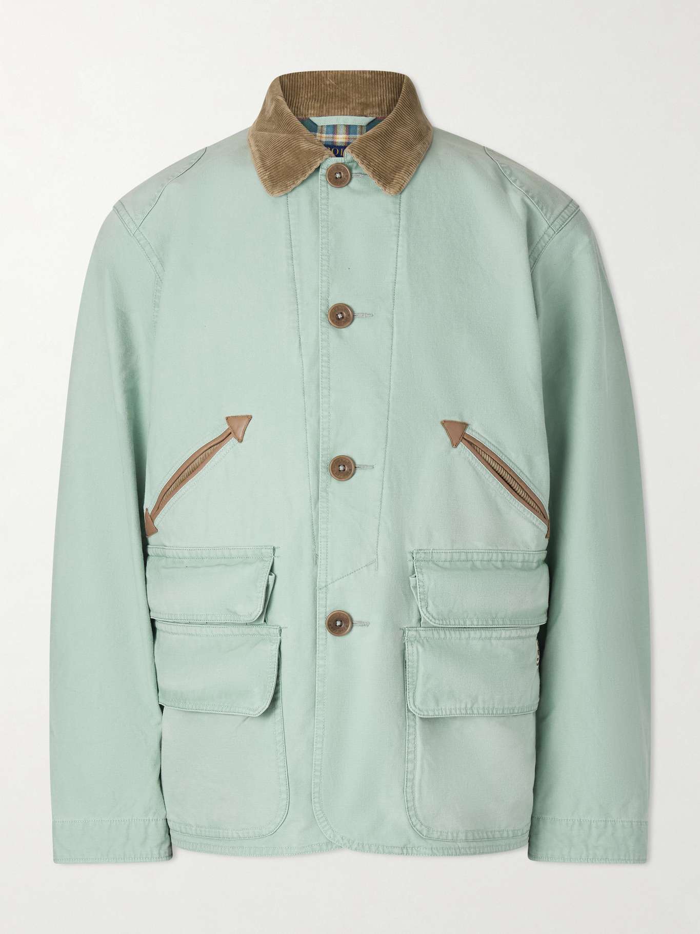 Polo Ralph Lauren's field jacket takes cues from the brand's extensive archives. Cut from cotton-canvas in a refreshing 'Faded Mint', it has leather trims, flap pockets and corduroy details that borrow from classic utilitarian styles.