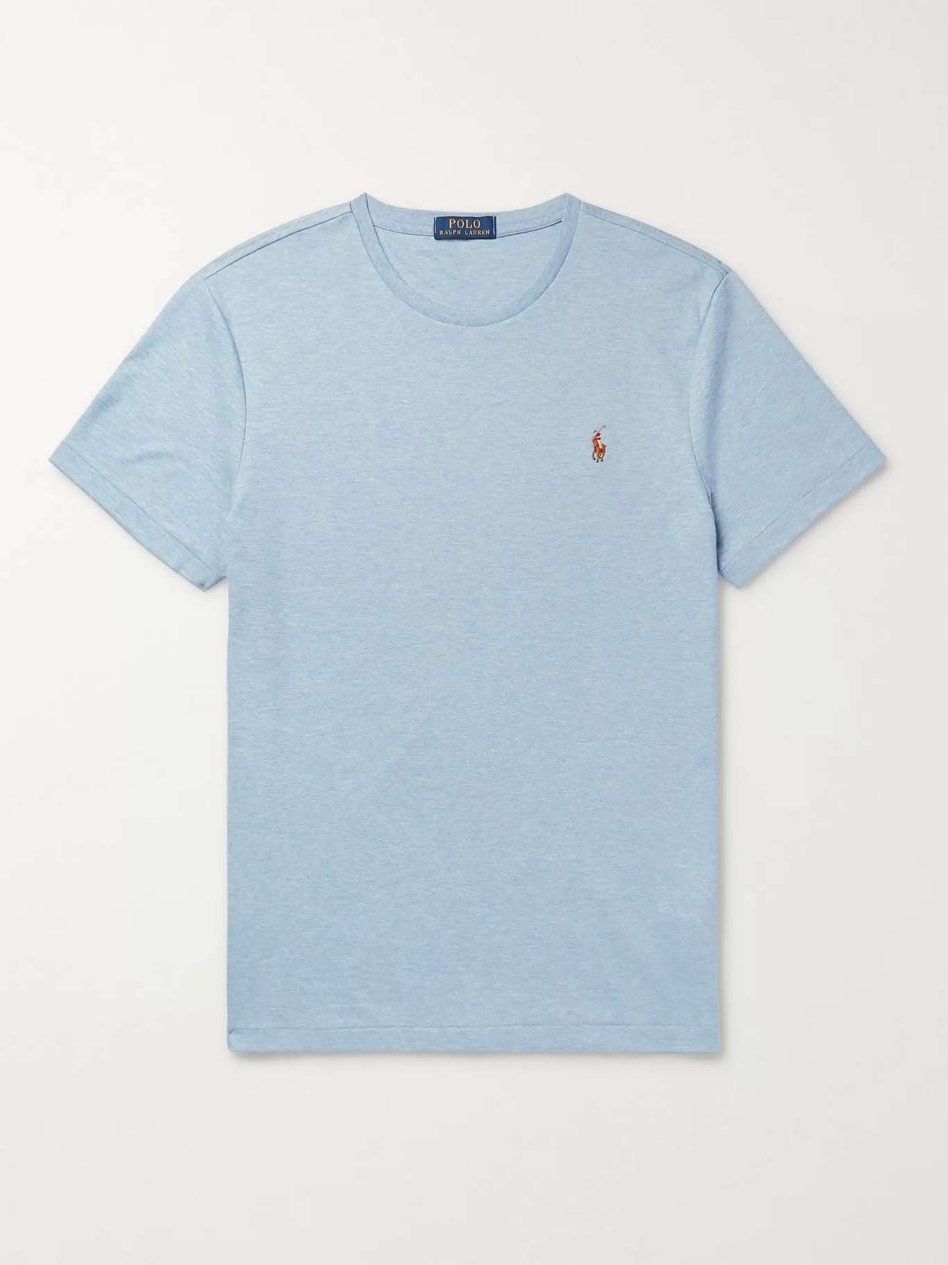 POLO RALPH LAUREN Slim-Fit Logo-Embroidered Mélange Pima Cotton-Jersey T-Shirt