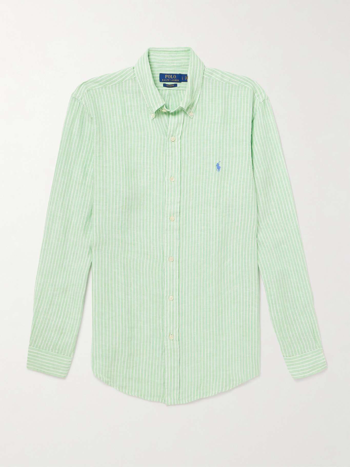 POLO RALPH LAUREN Button-Down Collar Logo-Embroidered Striped Linen Shirt