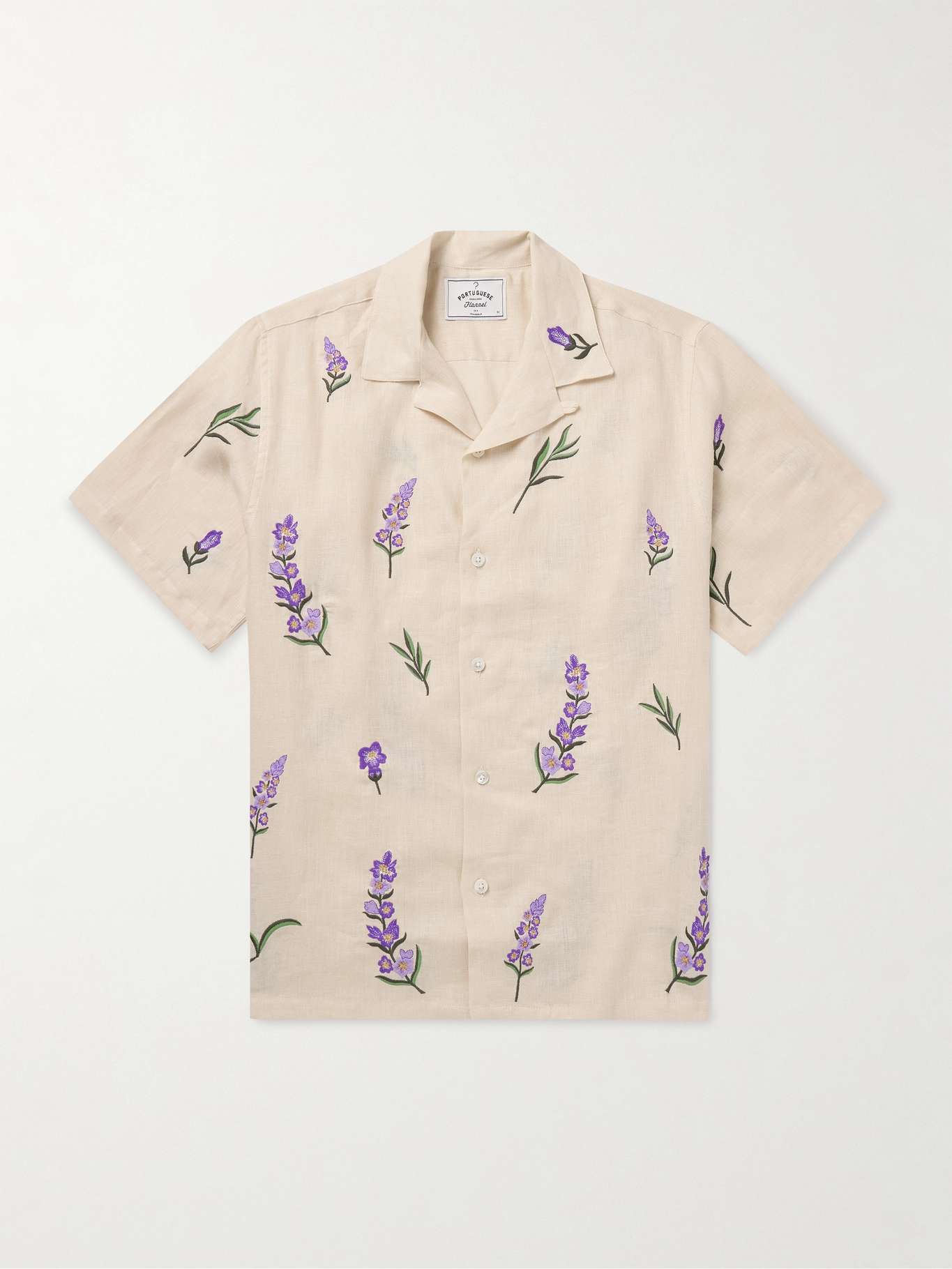 EXCLUSIVE AT MR PORTER. Portuguese Flannel’s shirt is perfect for sunny holidays. It’s made from lightweight linen with a camp collar and hand-embroidered with colorful lavender sprigs.