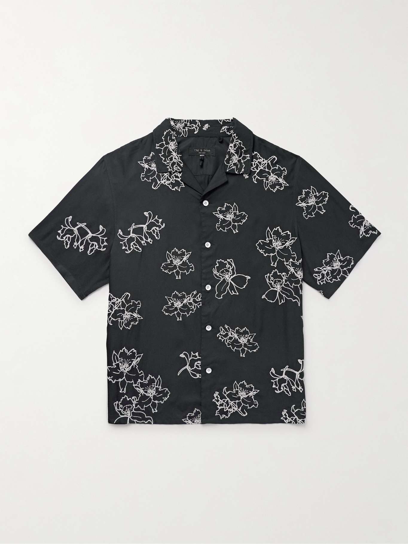rag & bone's 'Avery Resort' shirt is designed for warm weather, whether you're spending time on holiday or with friends back home. It's topped with a retro camp collar and cut for a comfortable fit from breathable twill that's embroidered with a floral pattern.