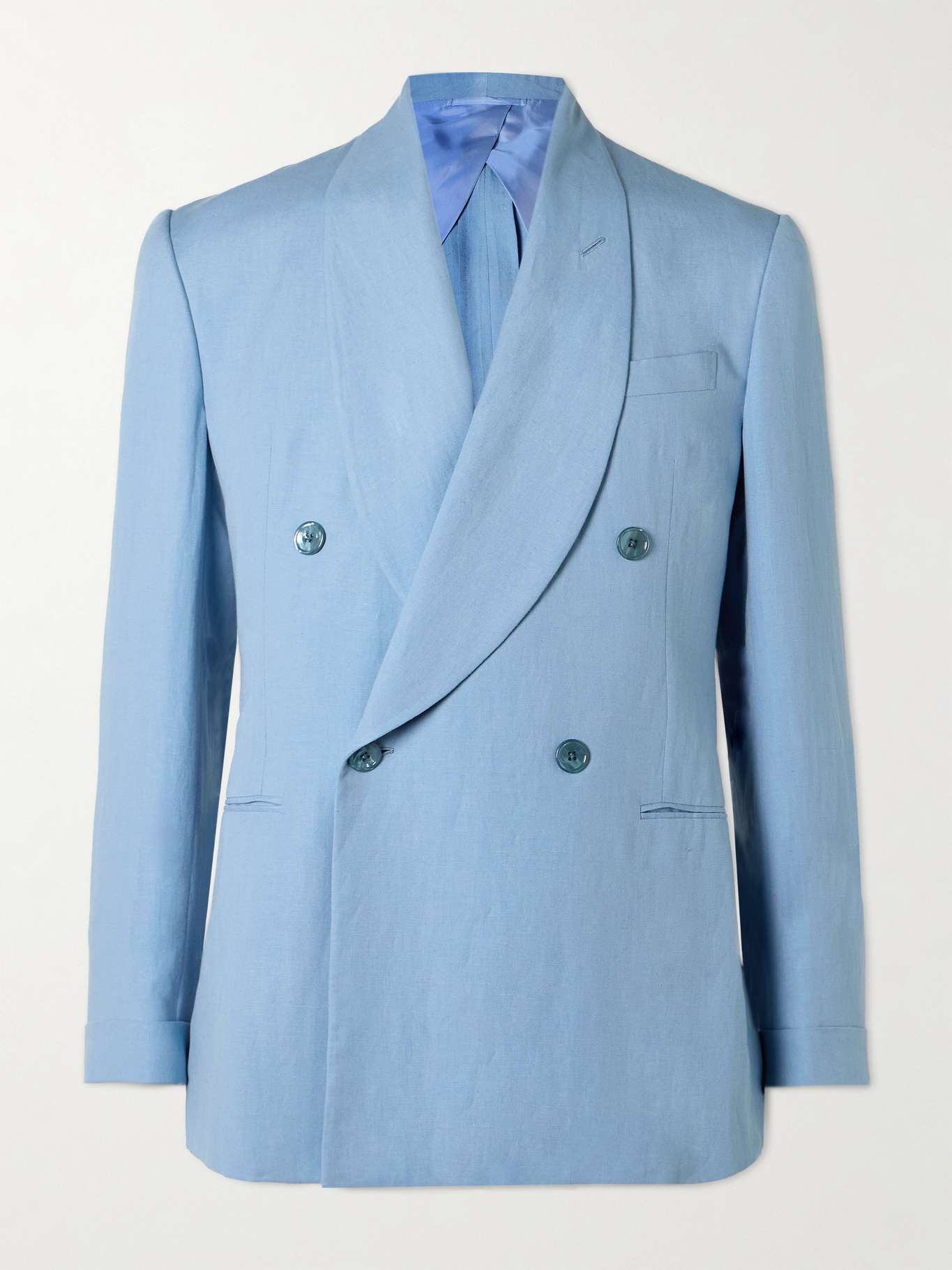 RALPH LAUREN PURPLE LABEL Kent Double-Breasted Silk and Linen-Blend Suit Jacket