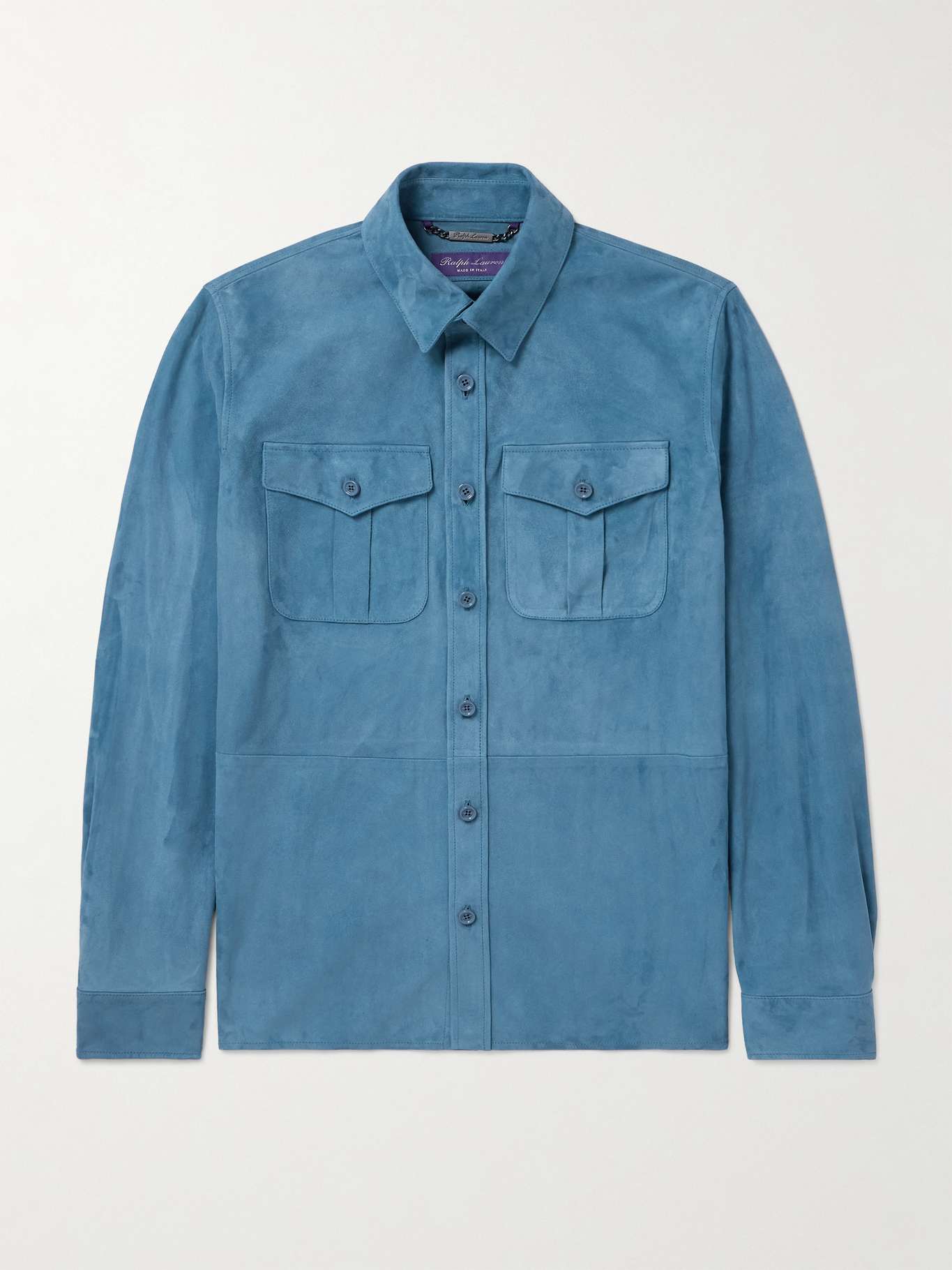 Introduced as a Savile Row-inspired tailoring line, Ralph Lauren Purple Label is the most premium offering in the designer's empire. This 'Barron' shirt jacket has been crafted in Italy from water-resistant 'Antique Blue' suede for a comfortable fit. Wear it unbuttoned over a T-shirt or rollneck sweater.