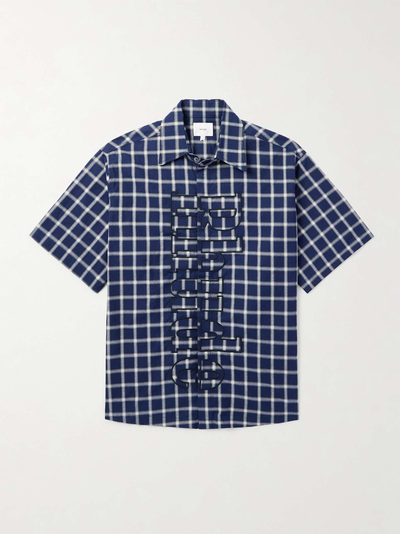 Big, bold branding is a hallmark of Rhude's garments, inspired by the designer's experience as a new immigrant in America, home to flashy logos and 'new money' status symbols. This checked shirt is cut from crisp cotton-poplin and embroidered with an oversized moniker across the placket.