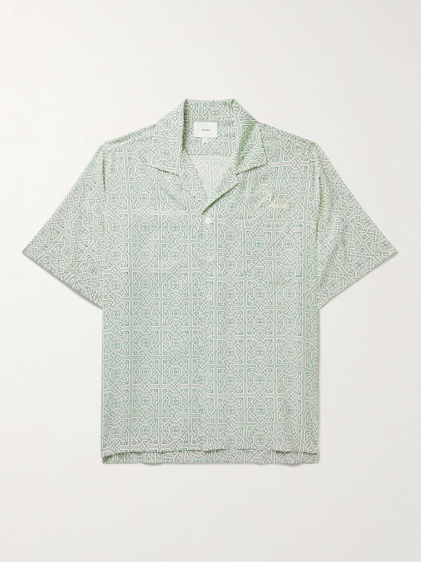 RHUDE Camp-Collar Logo-Embroidered Printed Silk-Twill Shirt