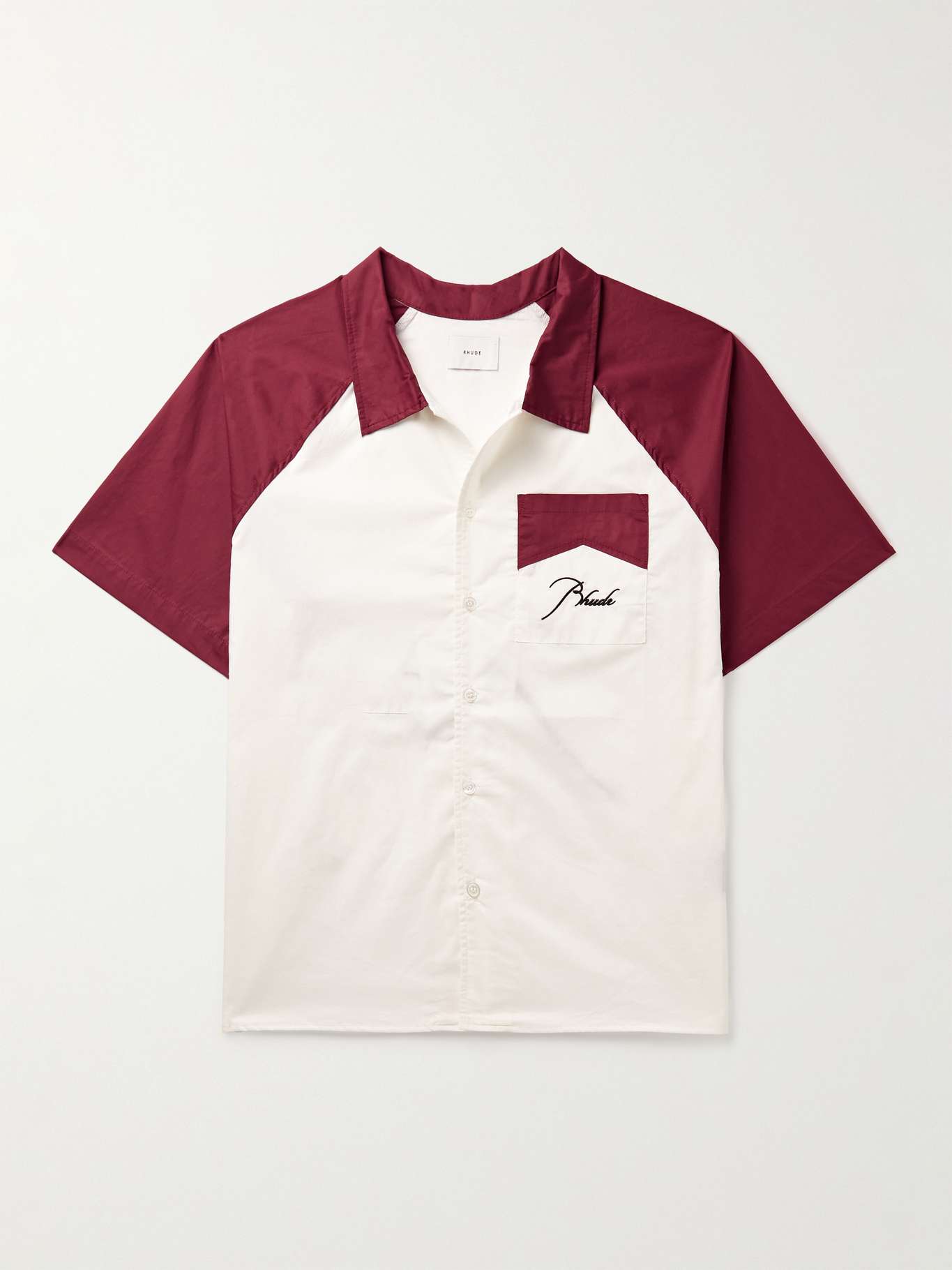 RHUDE Camp-Collar Two-Tone Logo-Embroidered Cotton-Poplin Shirt