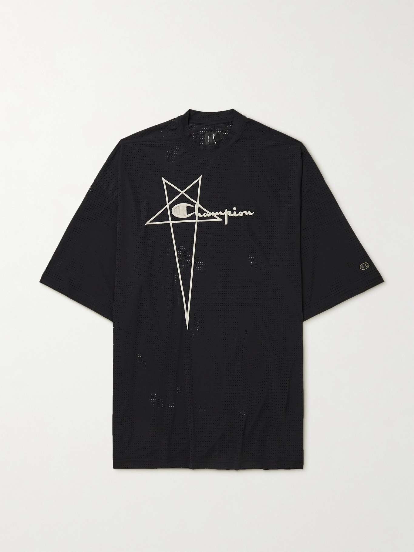 RICK OWENS + Champion Tommy Logo-Embroidered Recycled Stretch-Mesh T-Shirt