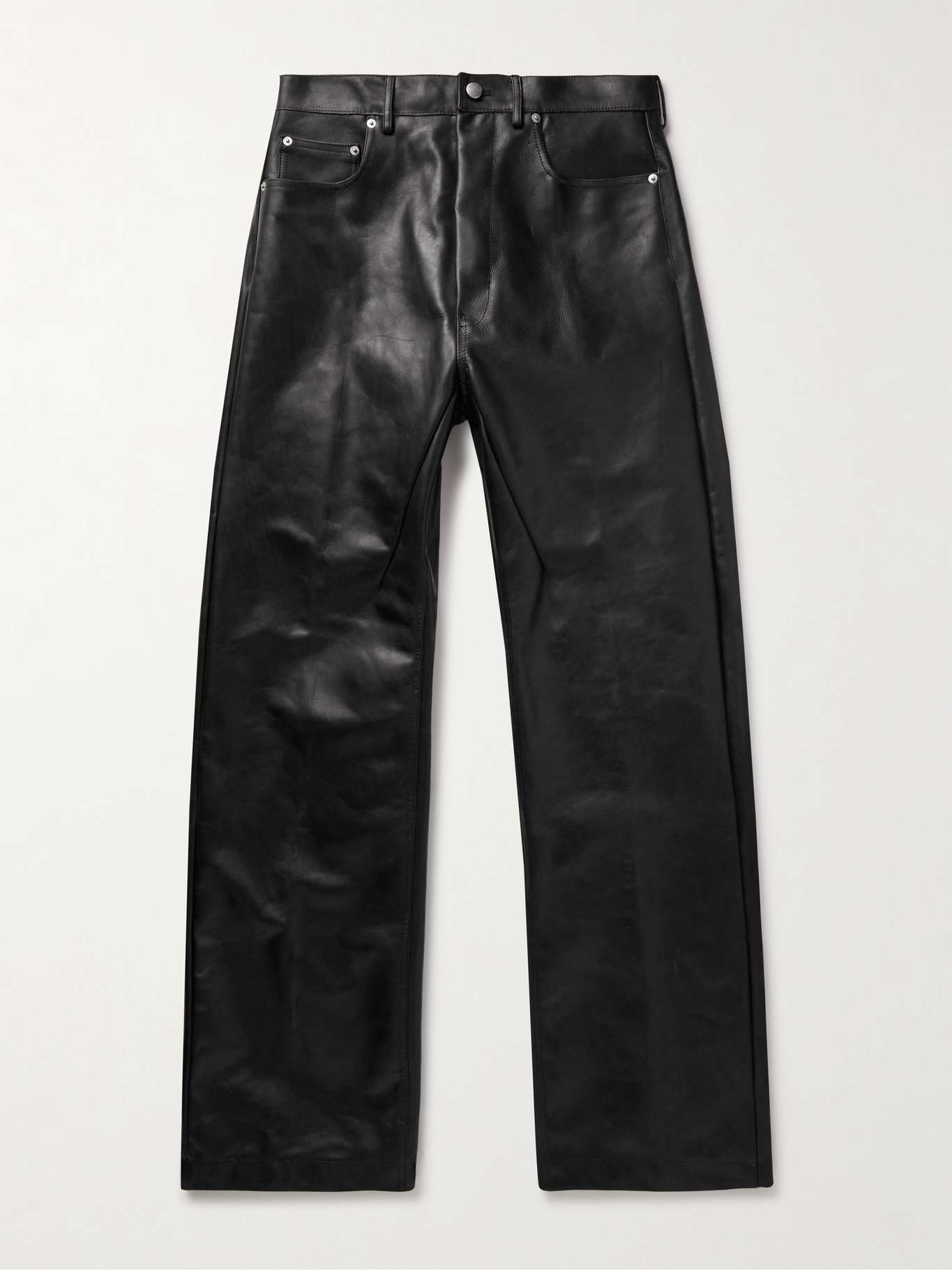 RICK OWENS Geth Straight-Leg Oiled-Leather Jeans