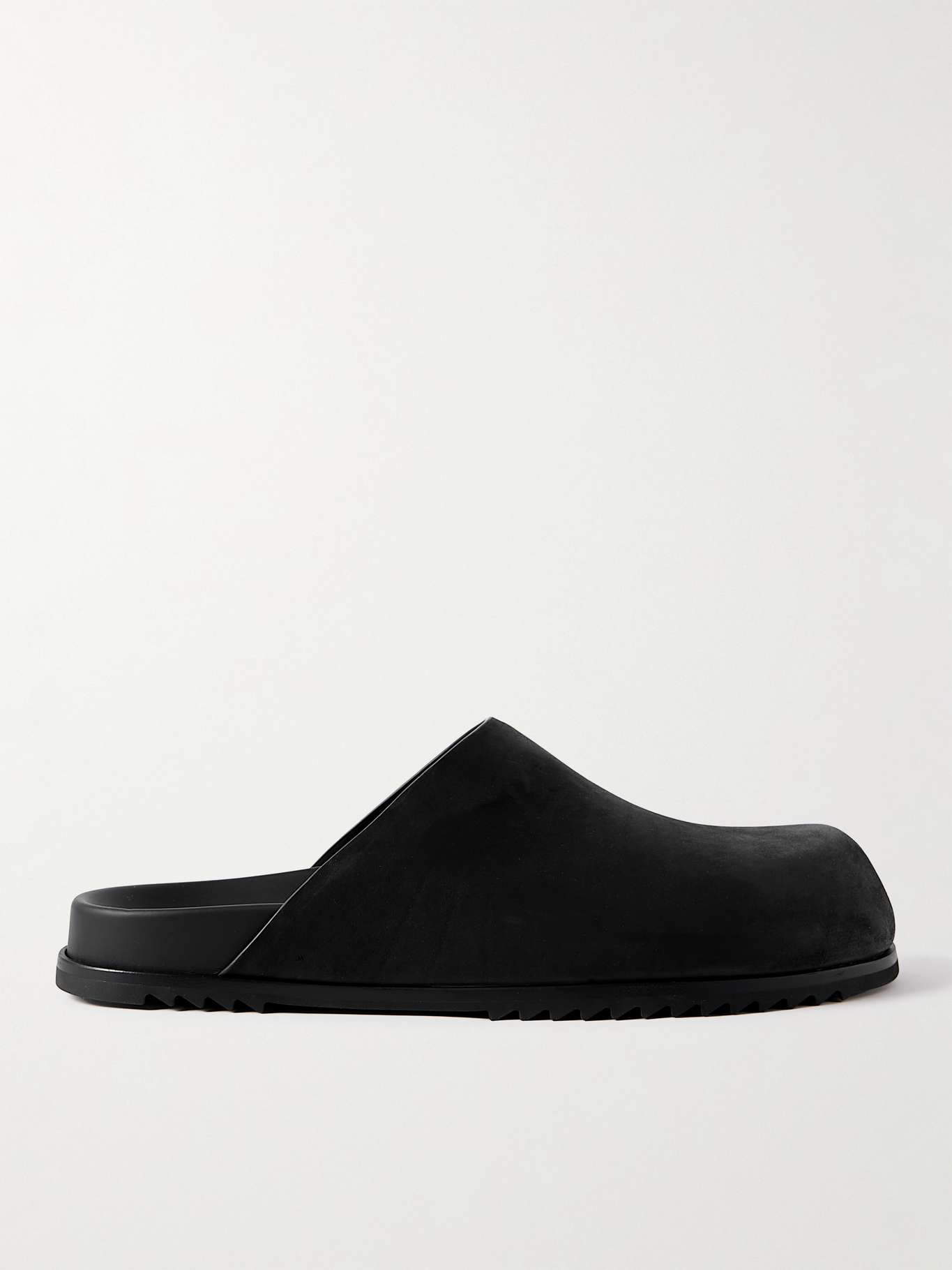 Rick Owens' pared-back mules have been crafted in Italy from soft nubuck that's finished with a slightly glossy sheen. They feature rounded toes, supportive footbeds and signature 'shark-tooth' rubber soles for grip.