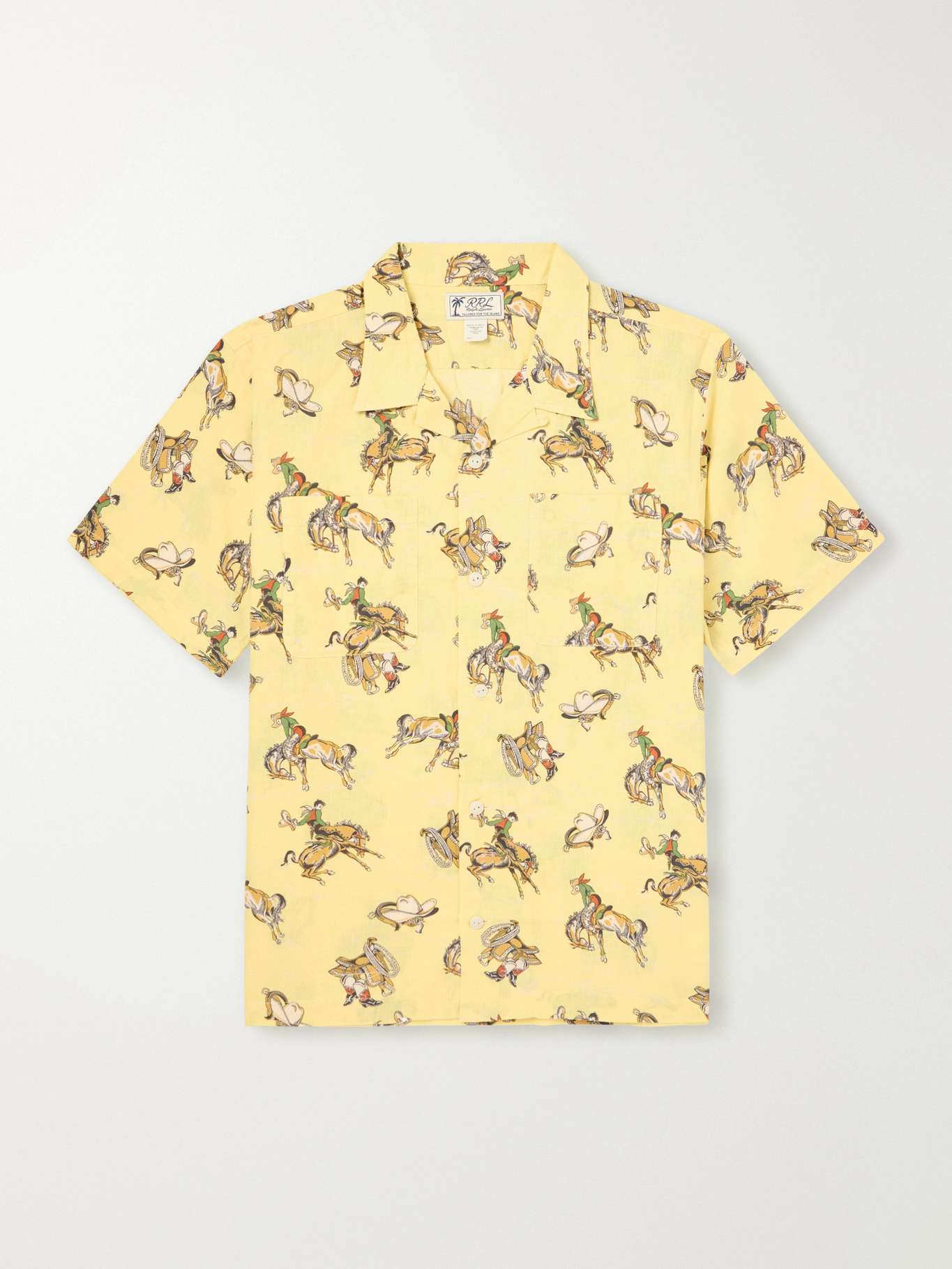 Printed with playful, vintage-inspired illustrations of horse-riding cowboys and accessories, RRL’s camp-collar shirt is cut from a cotton and linen-blend with a rustic handle in a regular fit with a straight hem. The design draws on the landscape of Ralph Lauren’s Colorado ranch.