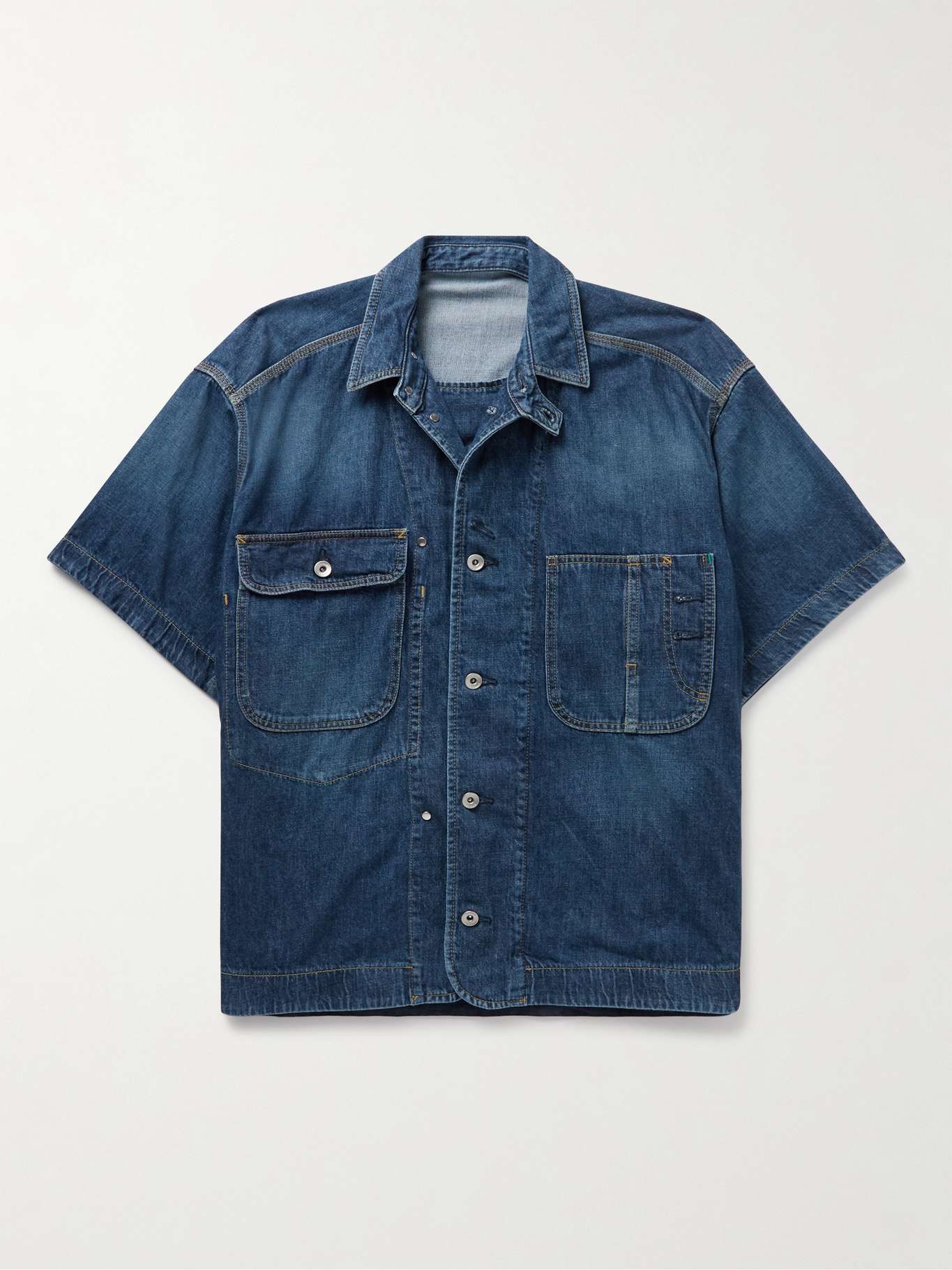 Sacai's Japanese-made shirt is cut for a boxy fit from denim with a subtle fade. It's minimally designed with workwear-inspired chest pockets and snap-fastening sides - a recurring detail this season.
