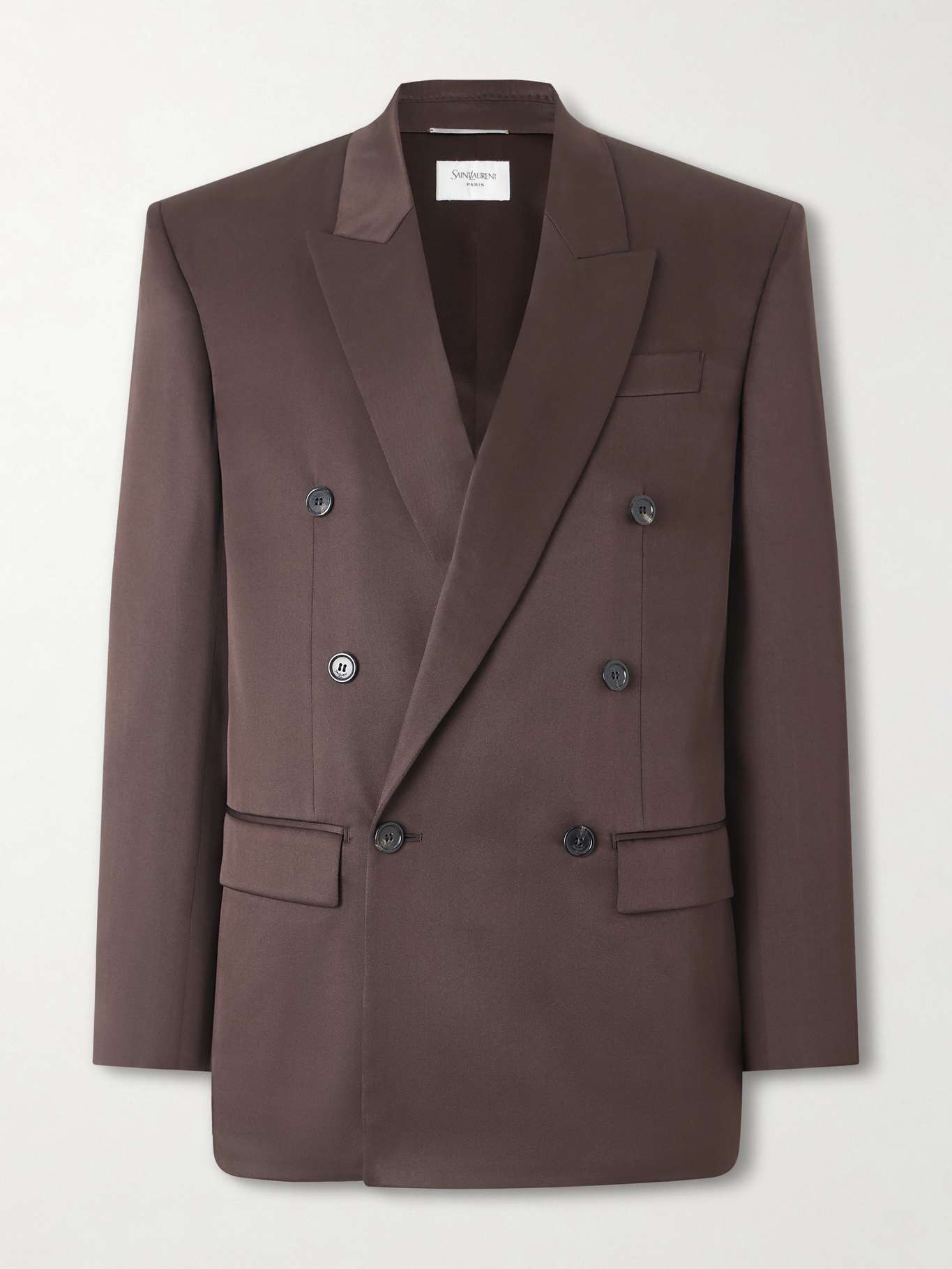 SAINT LAURENT's double-breasted blazer honours the legacy of Yves as it's a fine example of the designer's signature flou. It's been made in Italy from silk – a fabric that's known for its effortless drape -- and has structured shoulders and peak lapels.