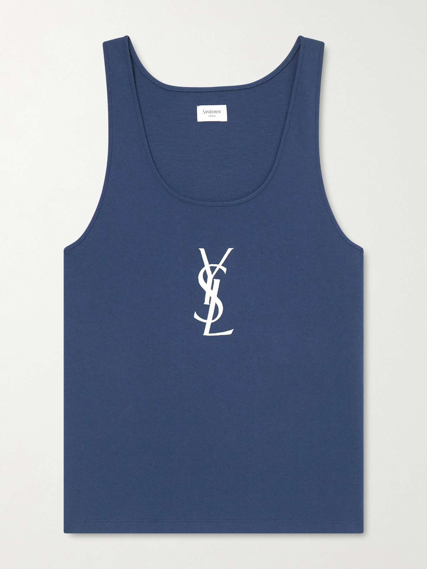 There's no mistaking SAINT LAURENT's tank top. It's cut from soft cotton-jersey and embroidered with the unmistakable 'Cassandre' logo, a signature since 1961.