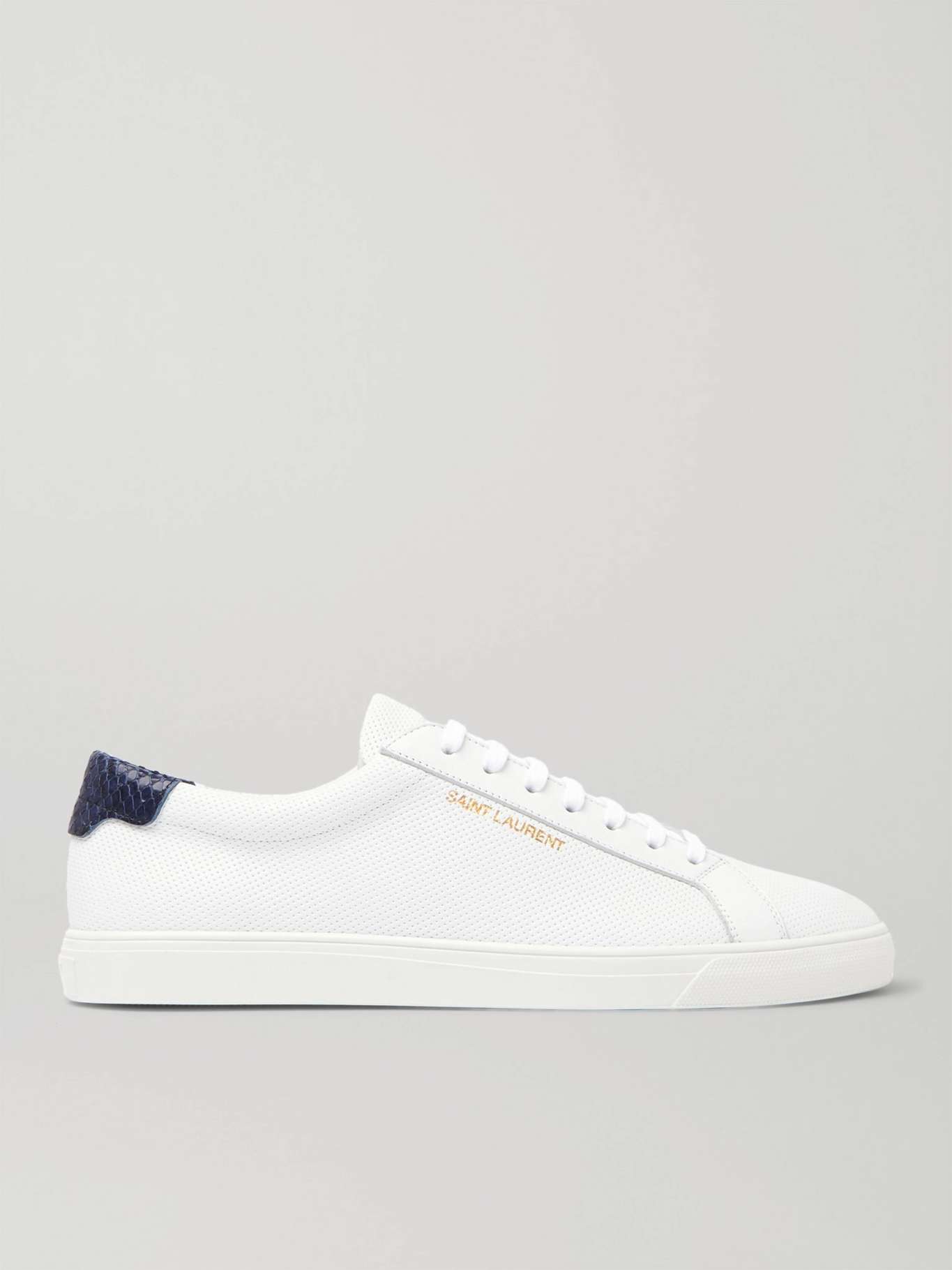 SAINT LAURENT Andy Snake Effect-Trimmed Perforated Leather Sneakers