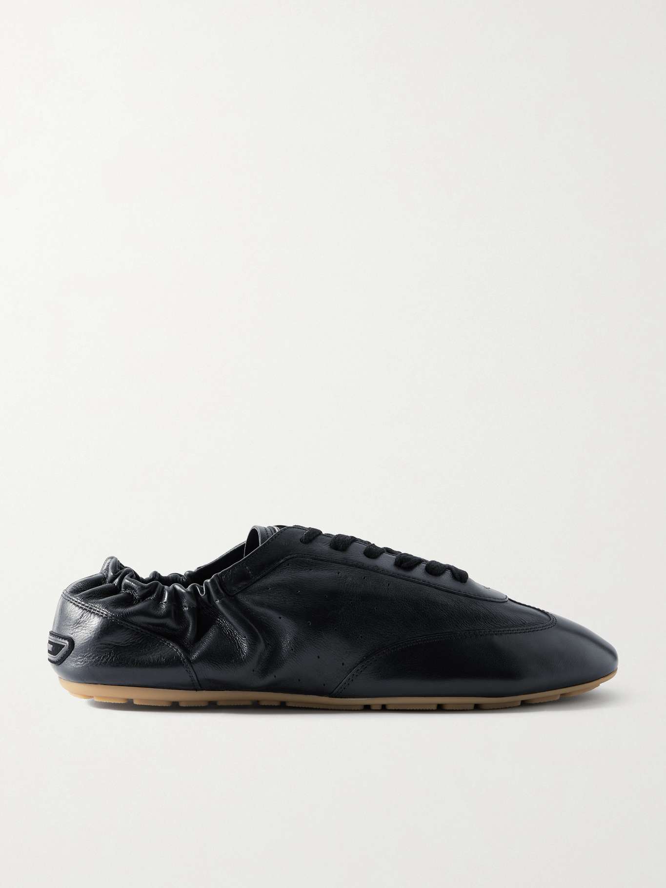 SAINT LAURENT's 'Lewis' shoes are ruched around the collars and heels, so they feel more like slippers than sneakers. They've been made in Italy from full-grain leather and are set on slim soles, like styles of the '70s and '80s.