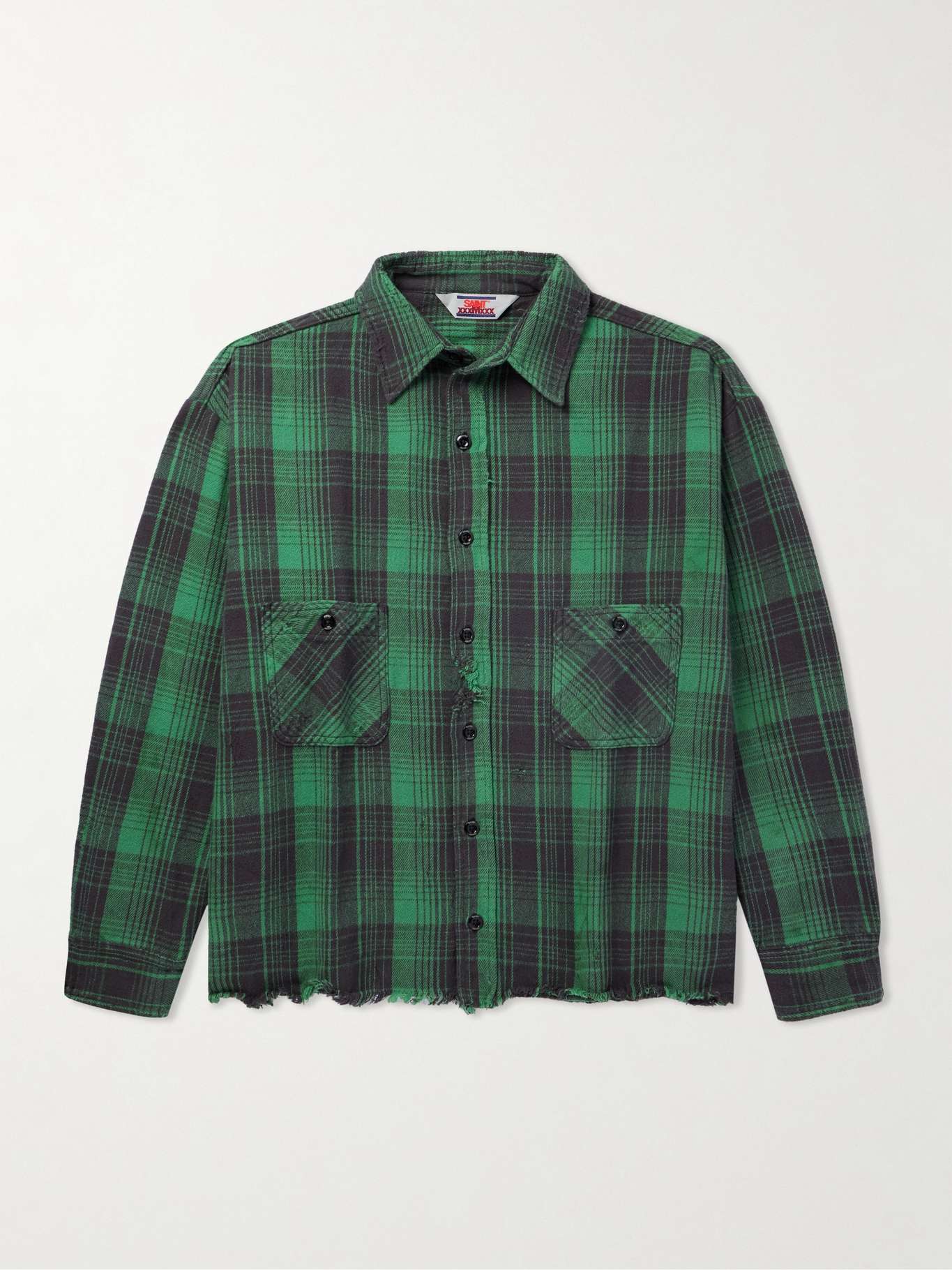 SAINT MXXXXXX Distressed Checked Cotton-Flannel Shirt