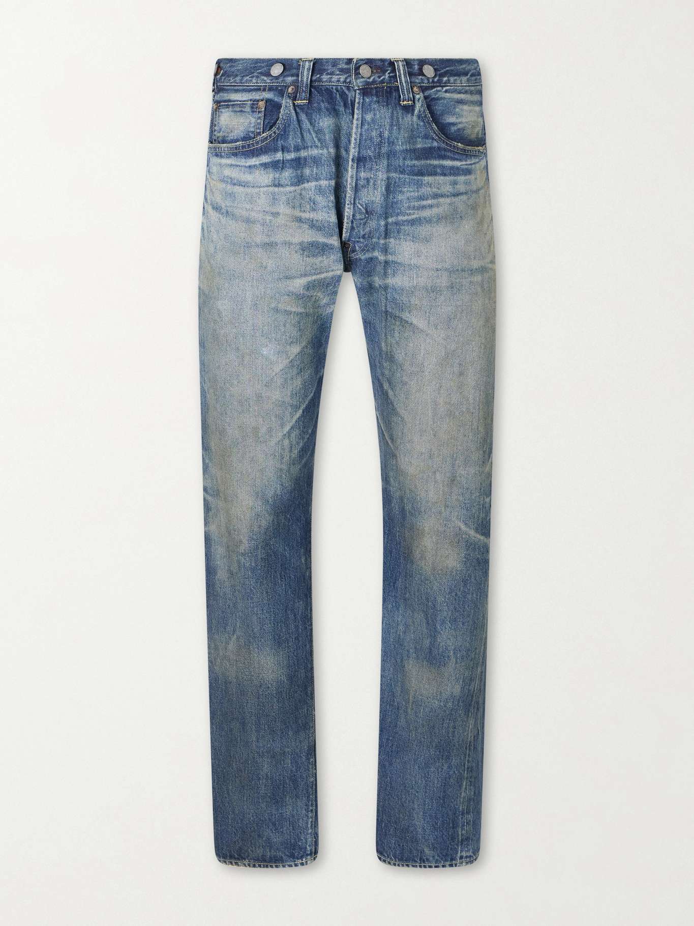 Inspired by vintage finds discovered at BerBerJin's Harajuku store, these SAINT Mxxxxxx jeans faithfully recreate the look and feel of a cherished pair. They're cut straight from rigid, non-stretch denim and treated to a heavily distressed wash. Team yours with the label's grungy print tees.