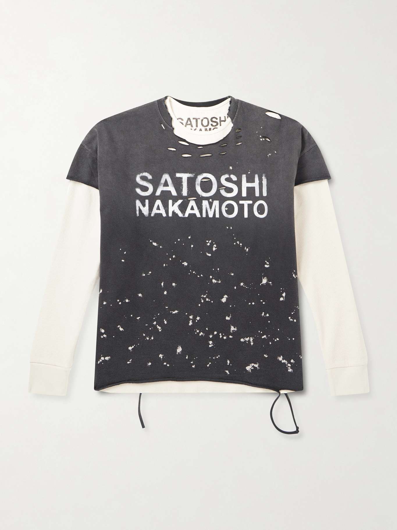 SATOSHI NAKAMOTO Luke Distressed Layered Logo-Print Waffle-Knit and Cotton-Jersey T-Shirt