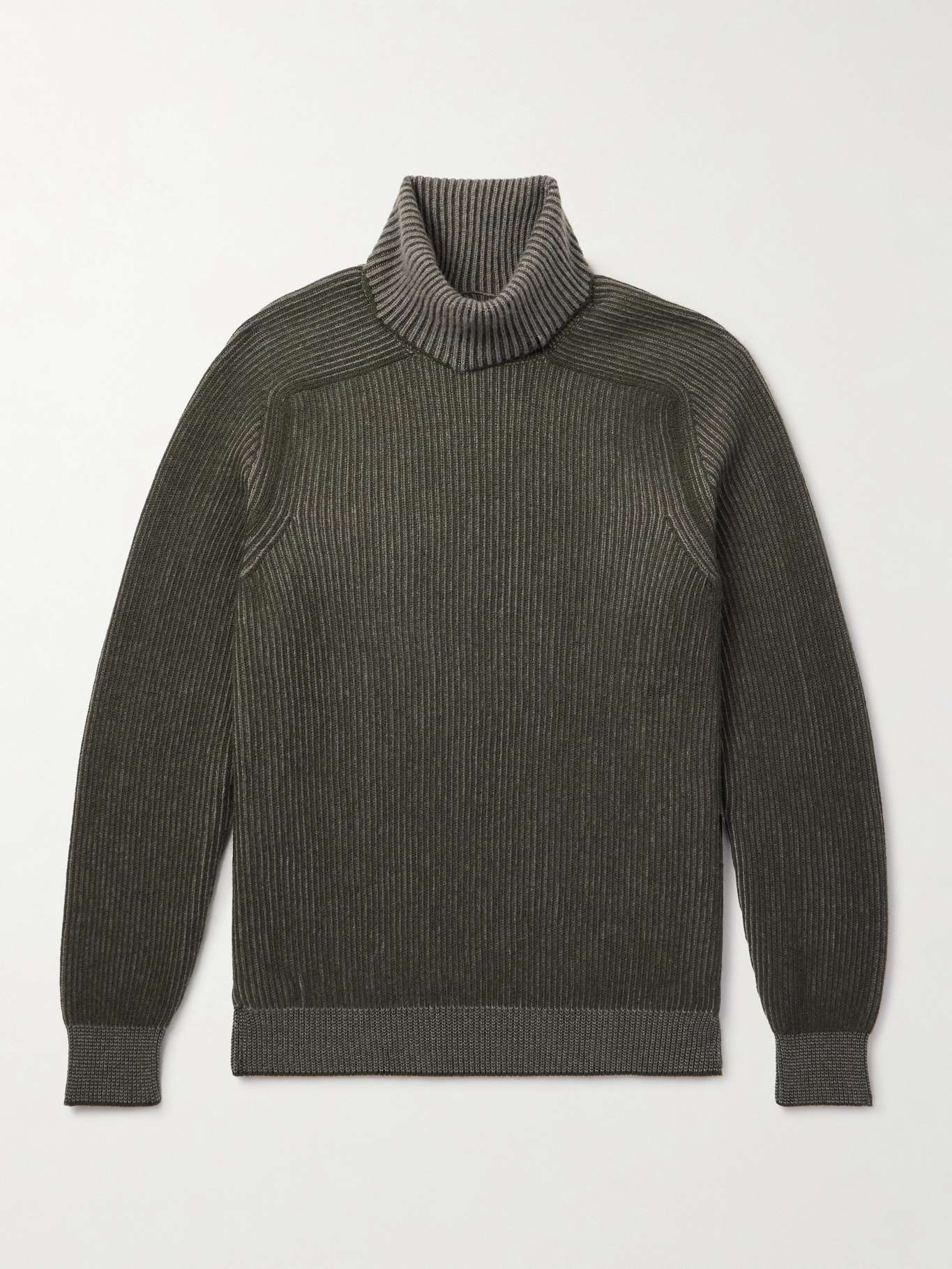 Sease's 'Dinghy' sweater can be worn front- or backwards - each side has different seaming to frame the yoke. It's rib-knitted from quality 7-gauge cashmere.
