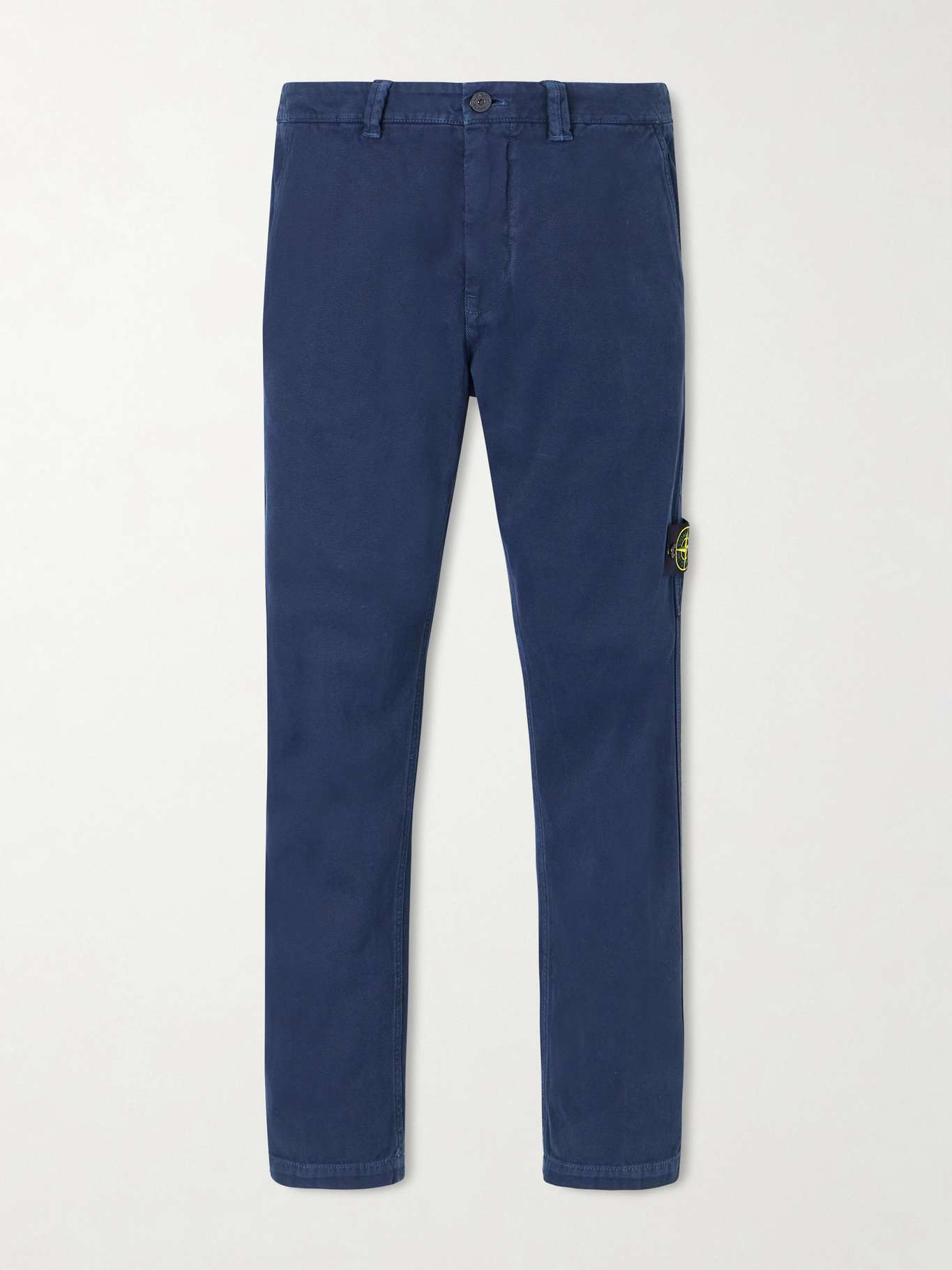 STONE ISLAND Straight-Leg Logo-Appliquéd Panama Cotton Trousers