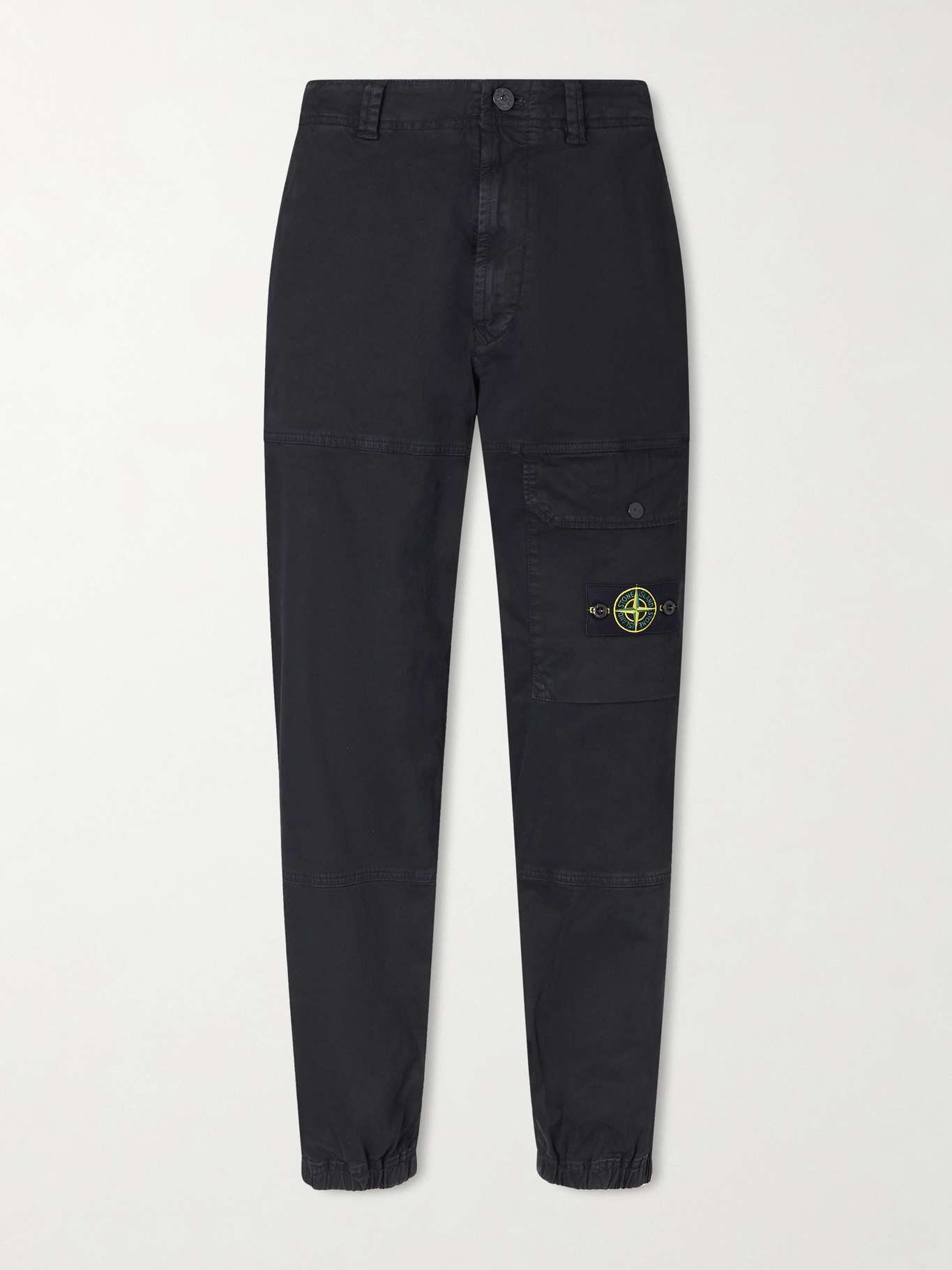 STONE ISLAND Tapered Logo-Appliquéd Cotton-Blend Twill Trousers