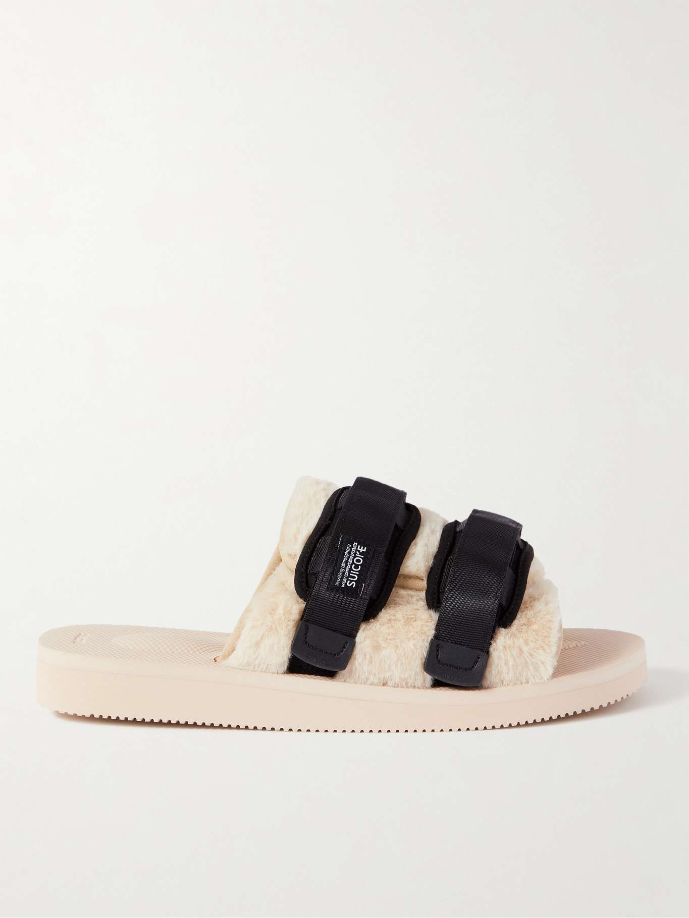Suicoke's 'Moto' slides have contoured footbeds and stacked soles that ensure all-day comfort. This pair is made from plush faux fur with shell trims and logo-detailed webbing straps for a secure fit.