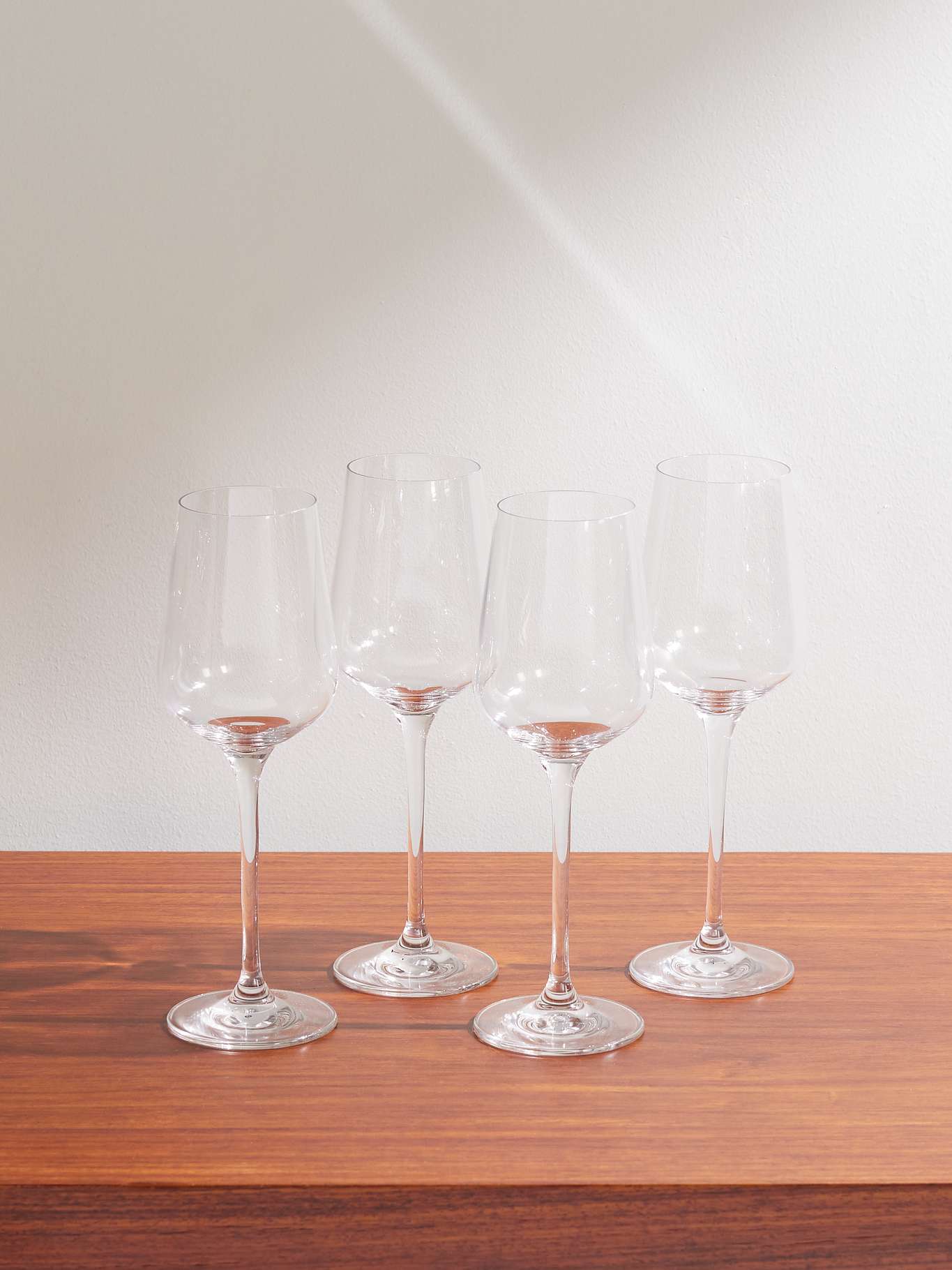 The Conran Shop's collection of 'Theia' glasses has been made from crystal in Slovakia - a country renowned for its glassmaking heritage. Each wine glass in this set of four has an elegantly tall stem balanced with a narrow bowl.