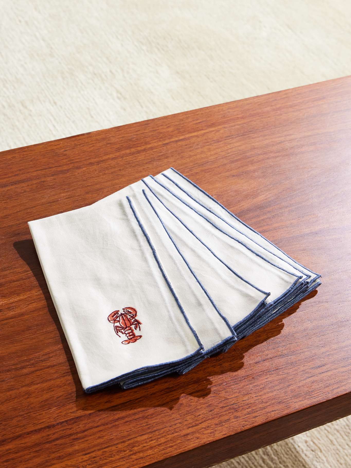 The Conran Shop’s set of six napkins makes a charming addition to any tablescape. Each is crafted from a cotton and linen-blend and printed with a lobster illustration at the corner.