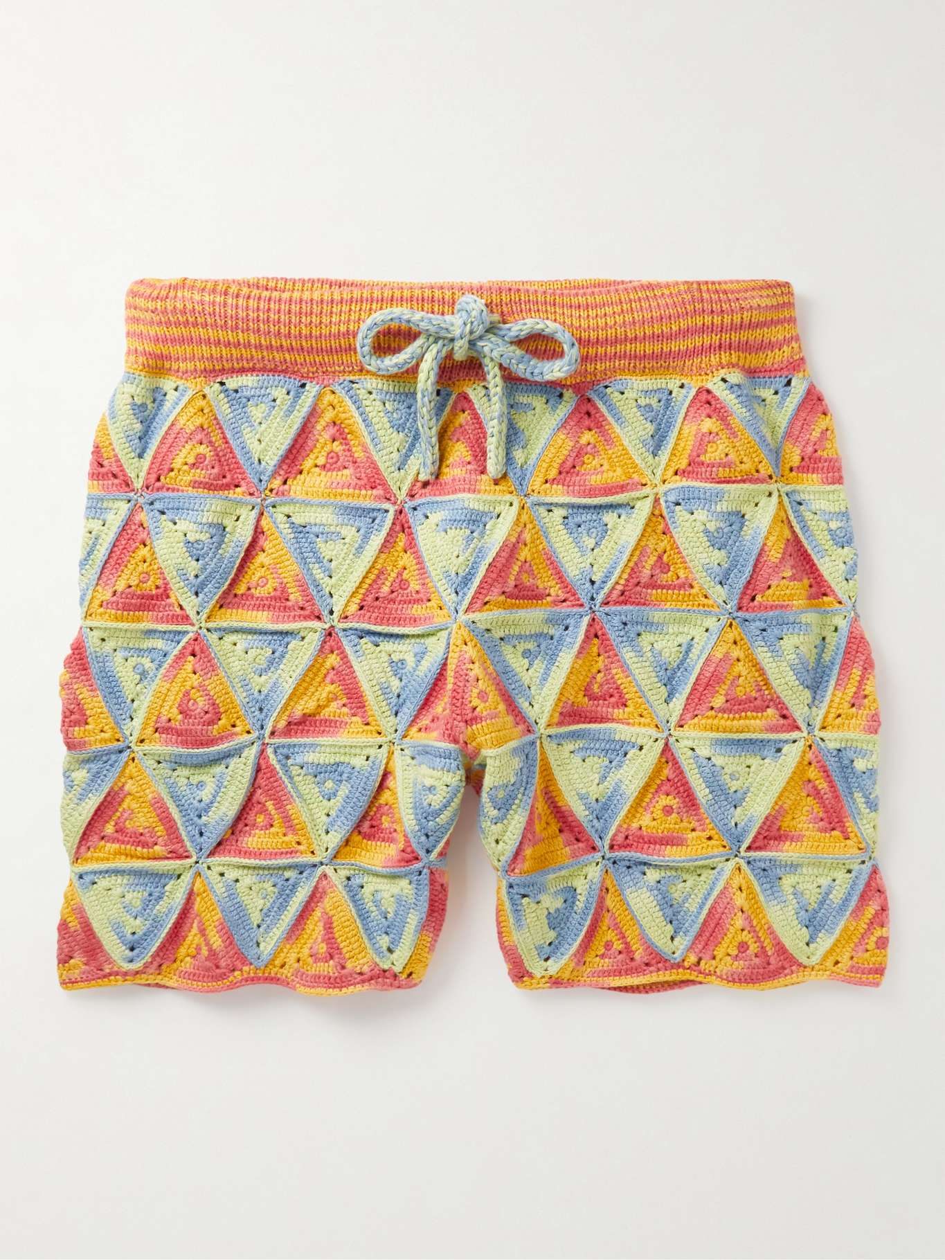 THE ELDER STATESMAN Solar Straight-Leg Crocheted Cotton Drawstring Shorts